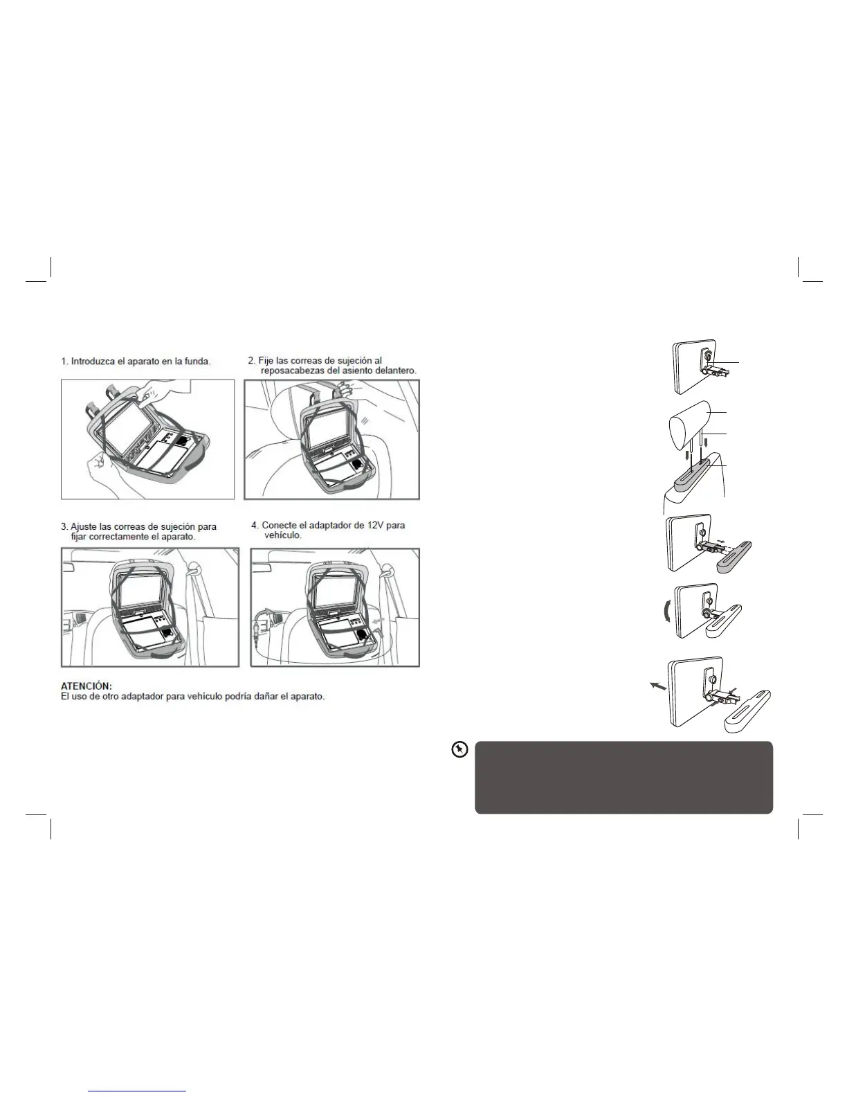 •Dit apparaat dient nooit te worden gebruikt door de bestuurder van het voertuig en dient nooit