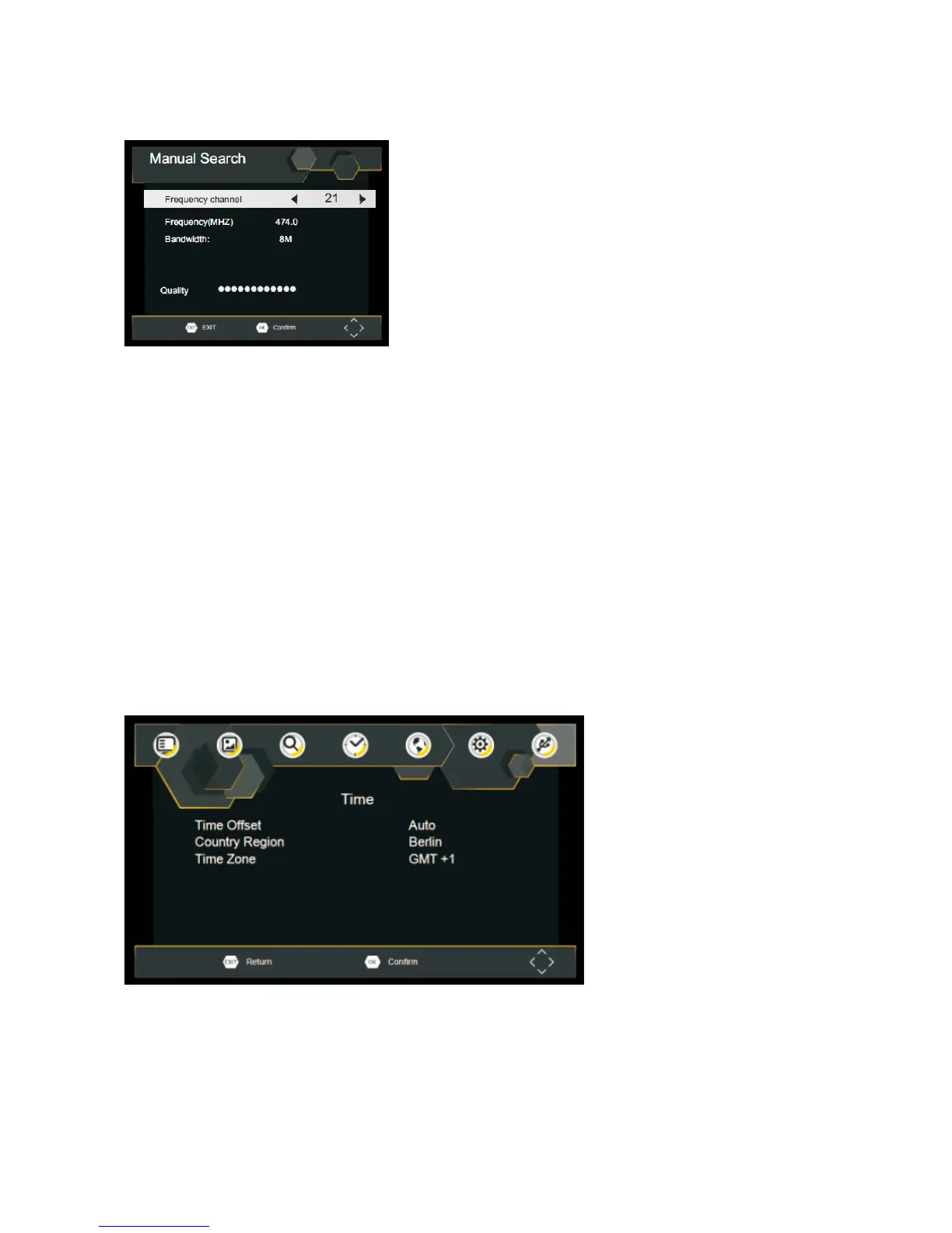 1. Selecteer [Manual Search (Handmatig zoeken)] en druk op OK of op RECHTS. Het scherm voor het