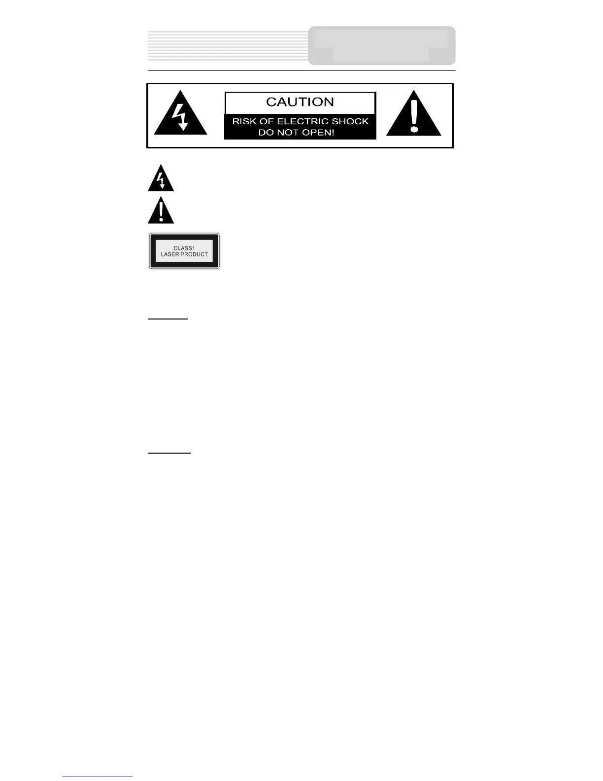 2. To reduce the risk of electric shock, do not remove the cover (or back). No