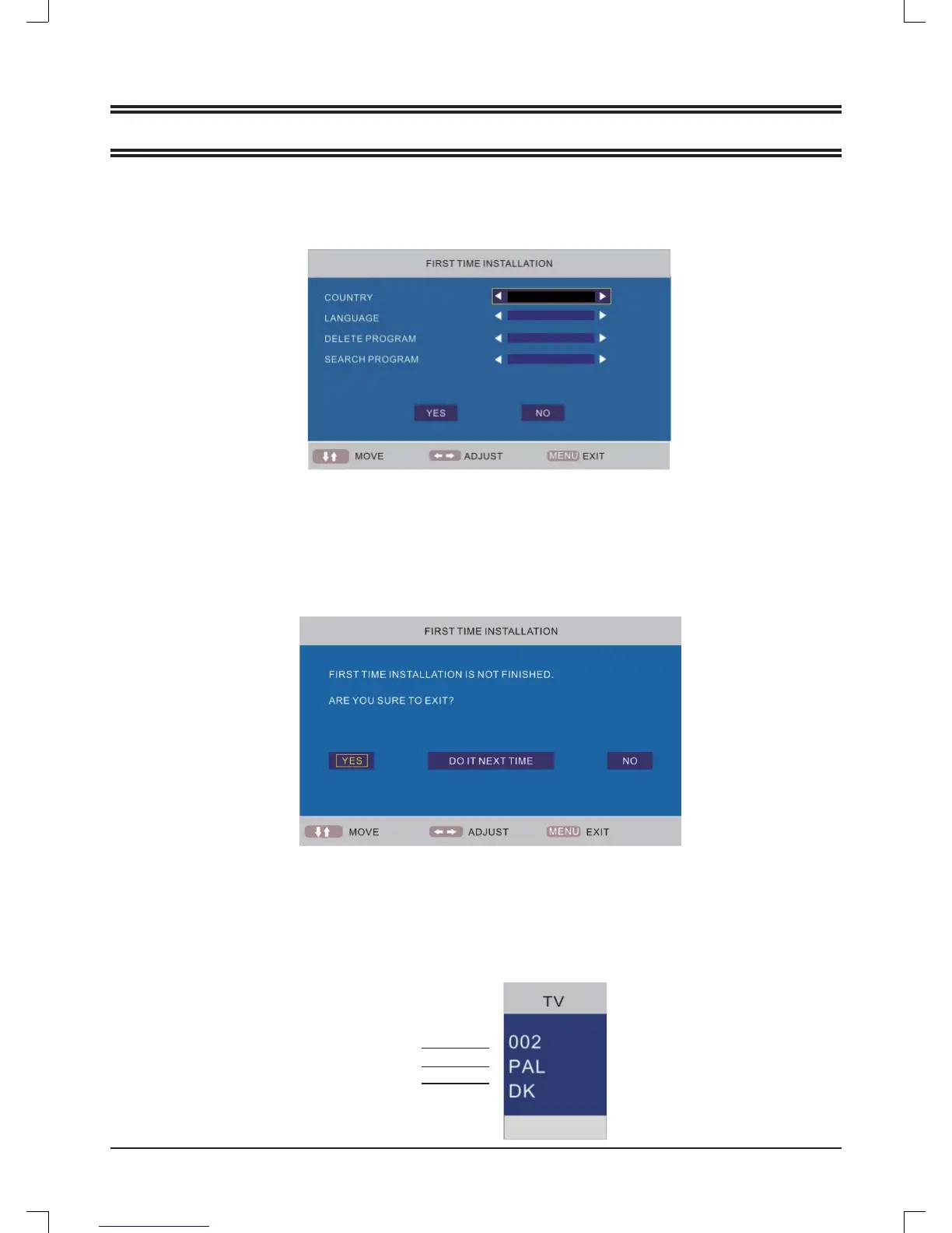 Het eerste installatiescherm verschijnt nogmaals, wanneer u gebruikt heeft gemaakt van de "reset" operatie en het hoofdap-