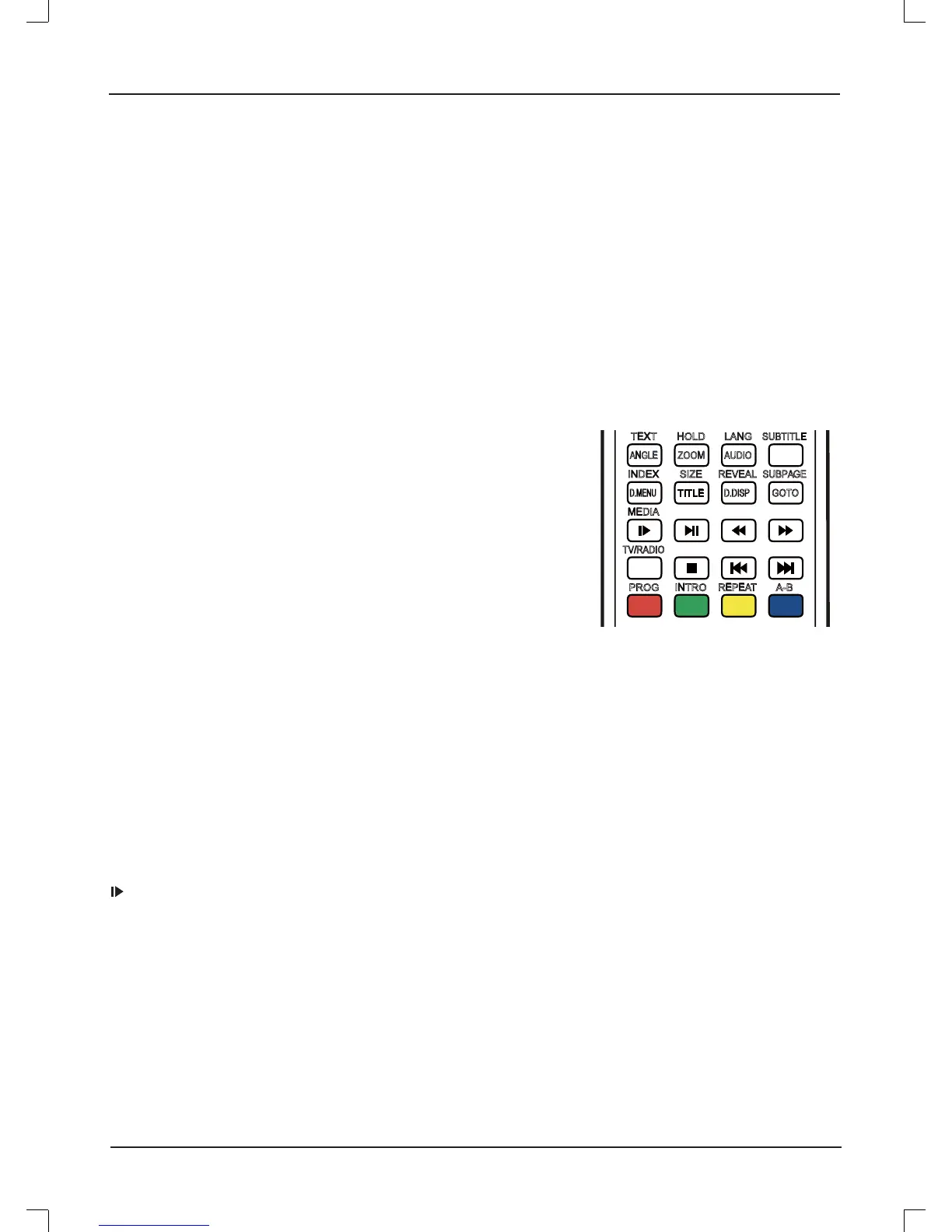 INTRO: Press to preview and introduce DVD disc contents (DVD mode only).