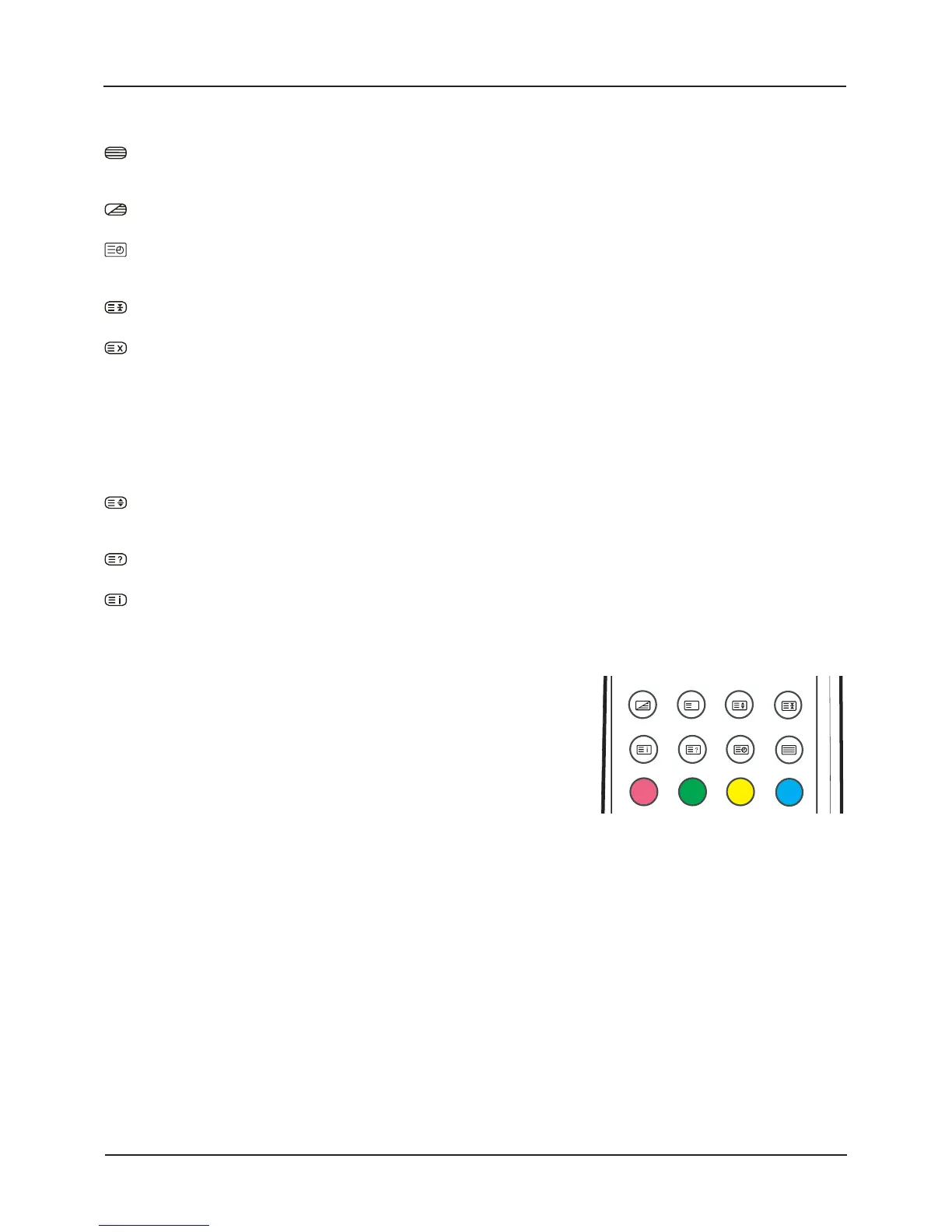 : Es erfolgt eine Weiterleitung an die Unterseite der Teletext-Seite, z. B. an die Subcode-Seite. Wird diese Taste ge-