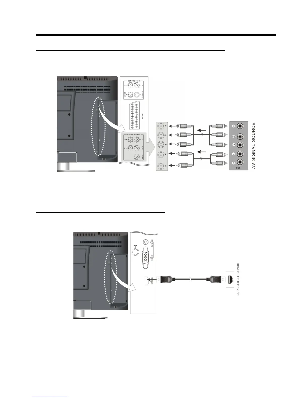 Use the audio and video cables to connect the Y/Pb(Cb)/Pr(Cr) input Jacks on the right side of the