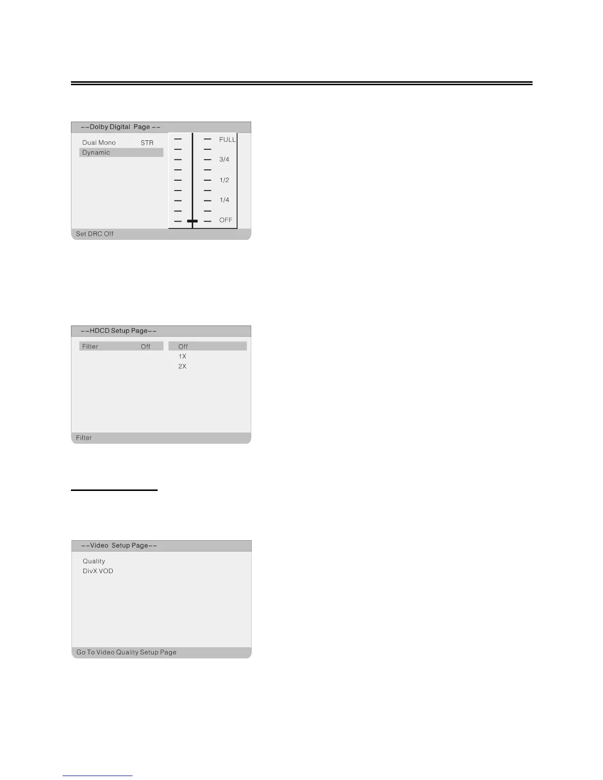 In the Audio Setup Page, use the ▲▼ direction buttons to select HDCD Setup. Press the OK button