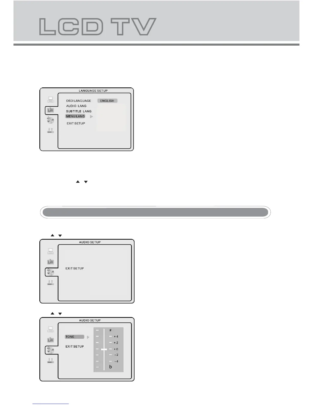- Use navigation buttons to select the MENU LANG setup icon,