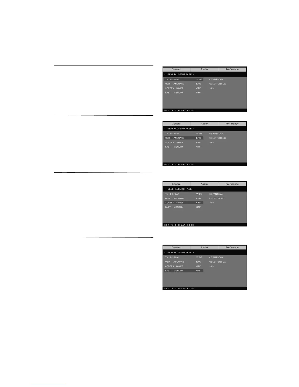 model such as 4:3 PS, 4:3 LB, 16:9 WIDE.