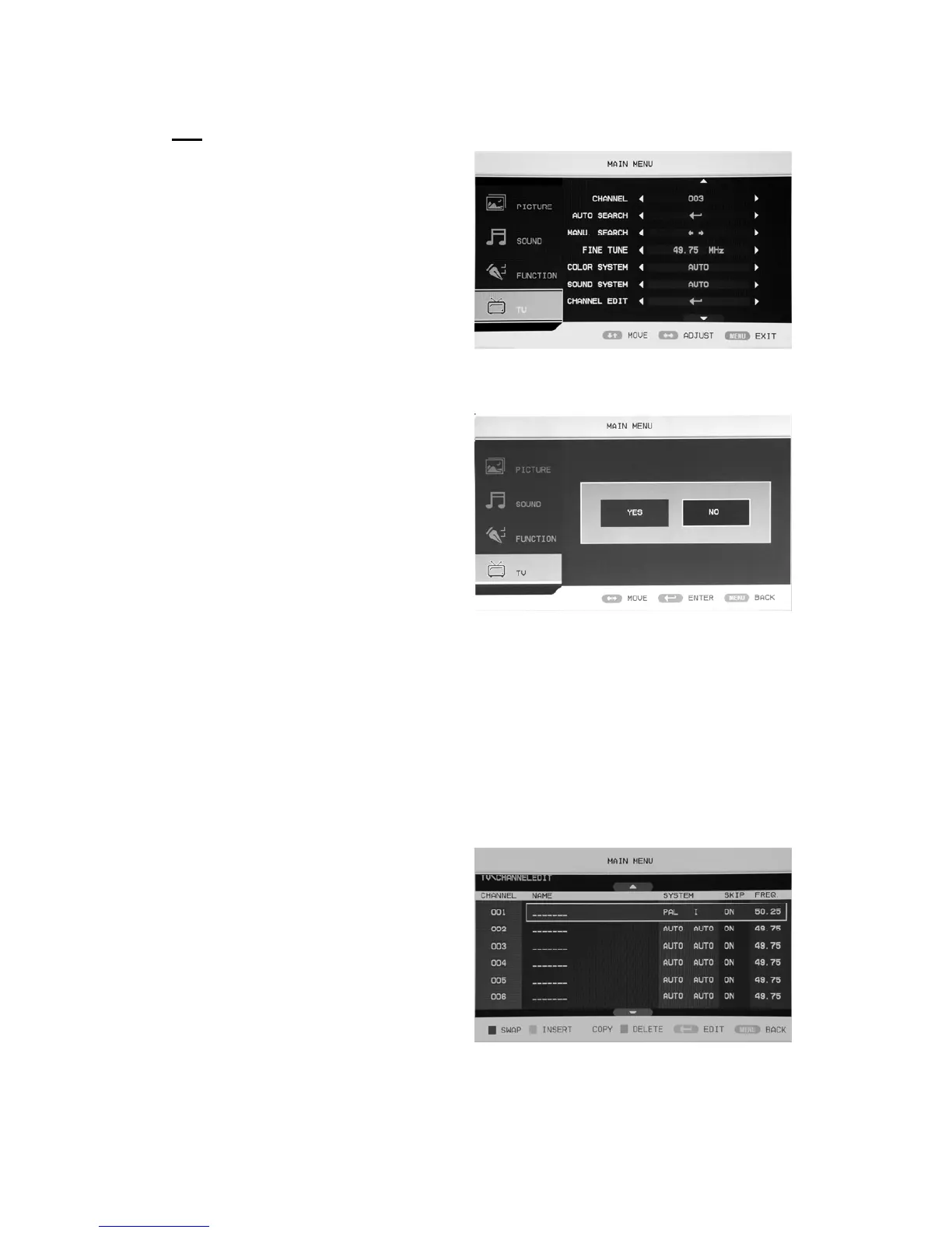 7. Benutzen Sie die Navigationstasten c/d zur Auswahl von „CHANNEL EDIT“ und betätigen