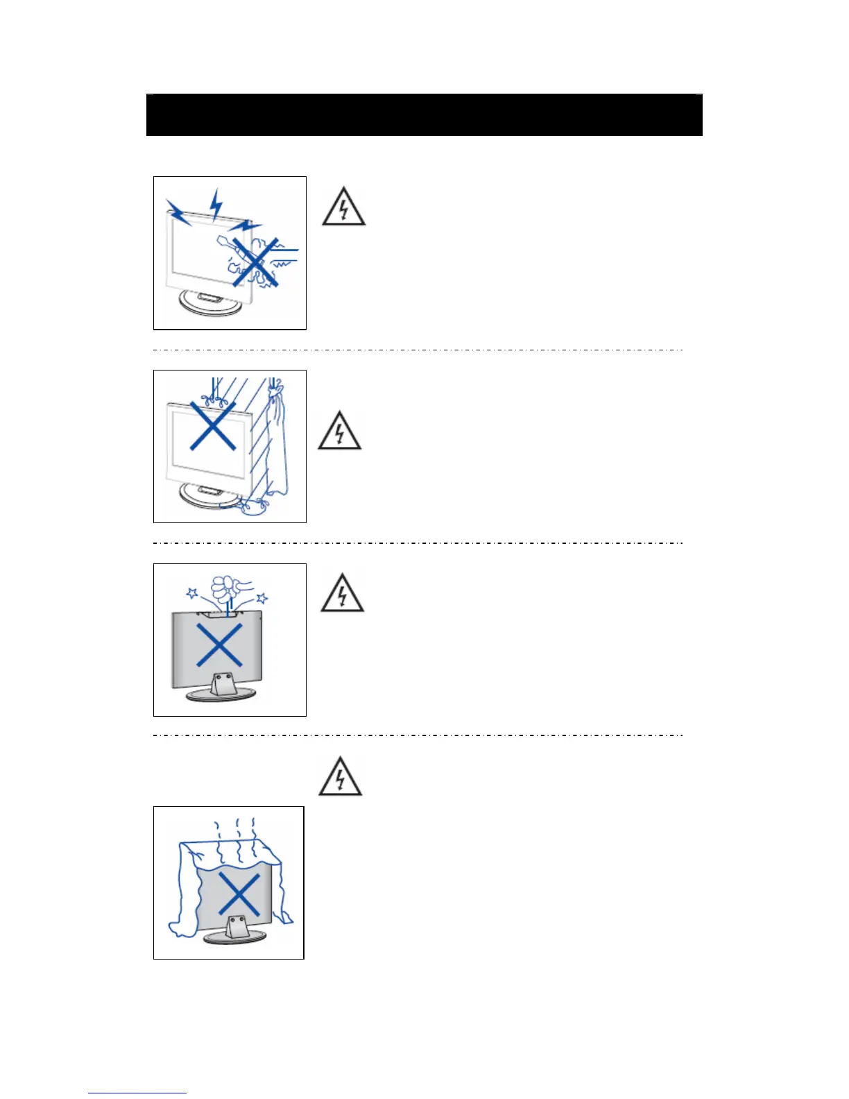 les ouvertures du boîtier de la TV. Ne renversez jamais tout type