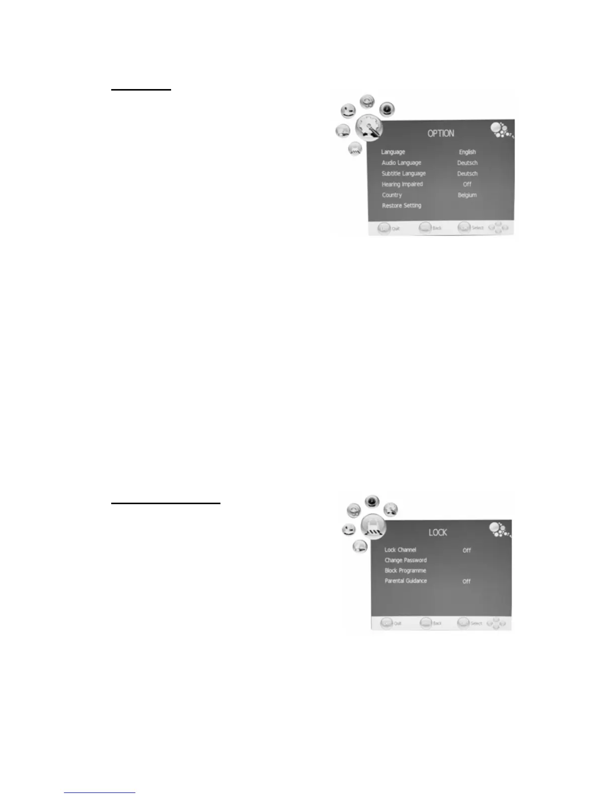 4. Appuyez sur les touches “c/d” pour sélectionner “Langue des sous-titres” puis appuyez sur “f”