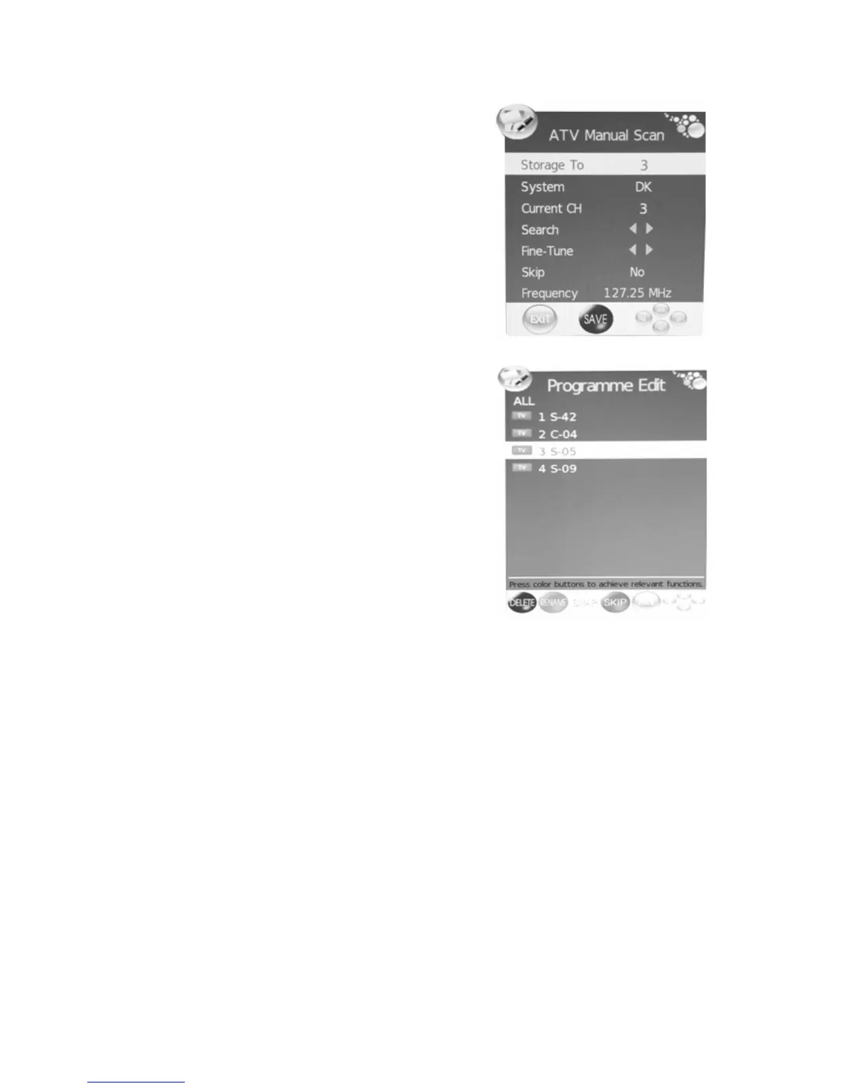 Appuyez sur la touche “c/d” pour sélectionner la chaîne et appuyez sur la touche “JAUNE”