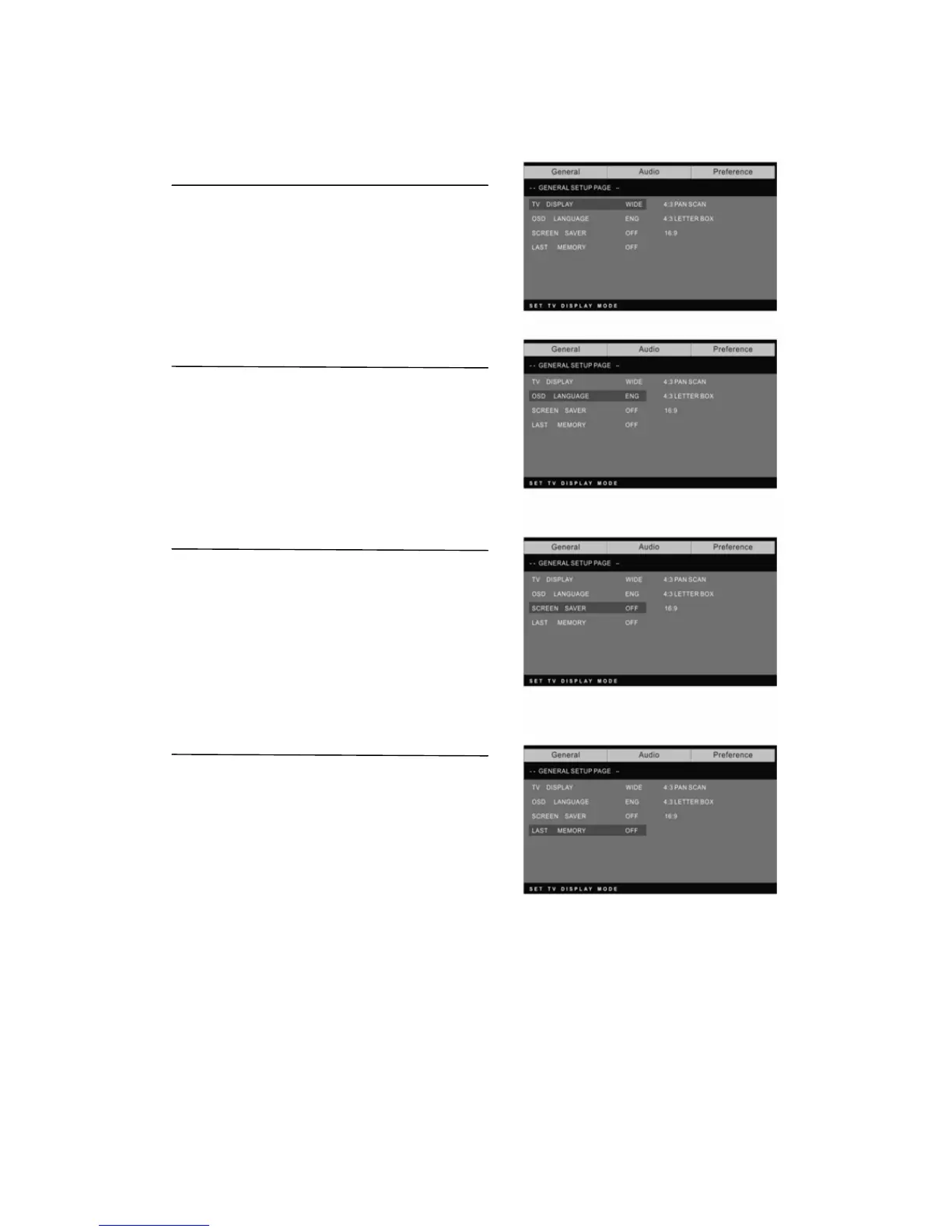 modèles d’affichage : 4:3 PS, 4:3 LB, 16:9 PLEIN