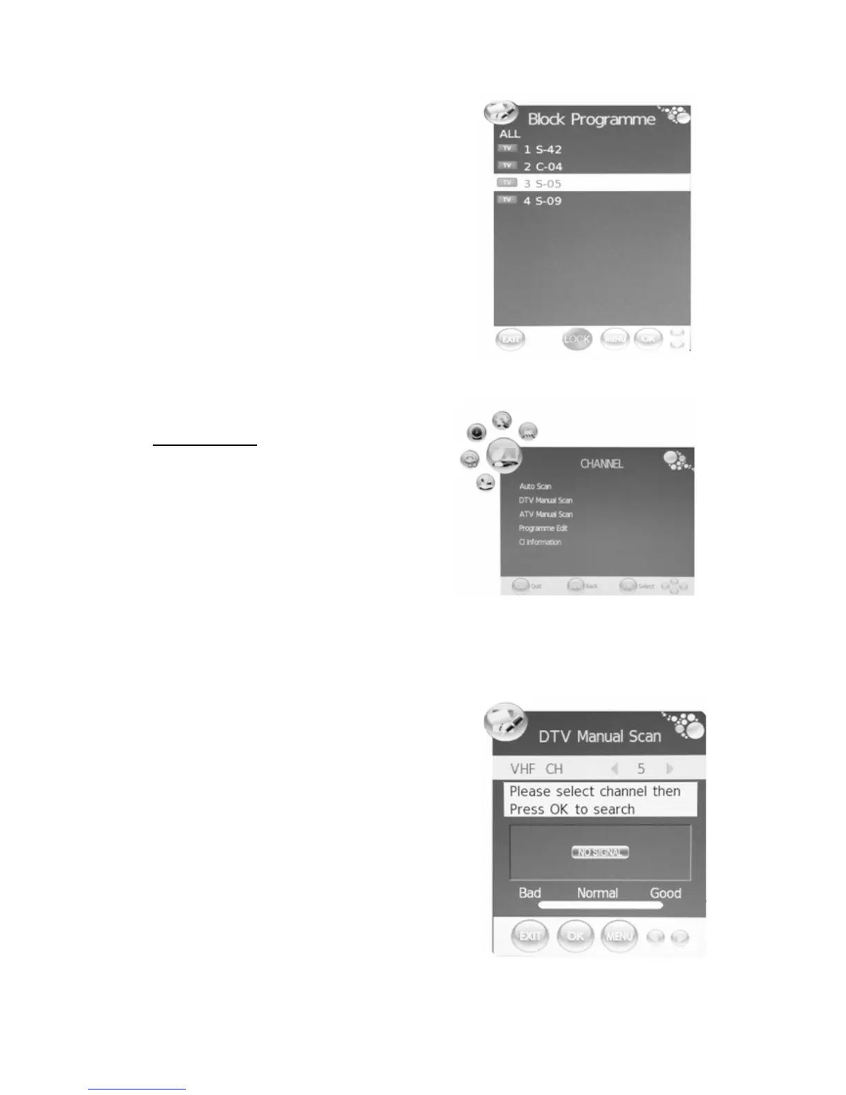 búsqueda manual de DTV. Pulse el botón “MENU”