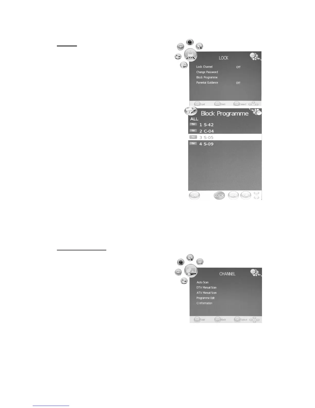 Channel”(Kanaal Vergrendelen) en druk op “e/f”