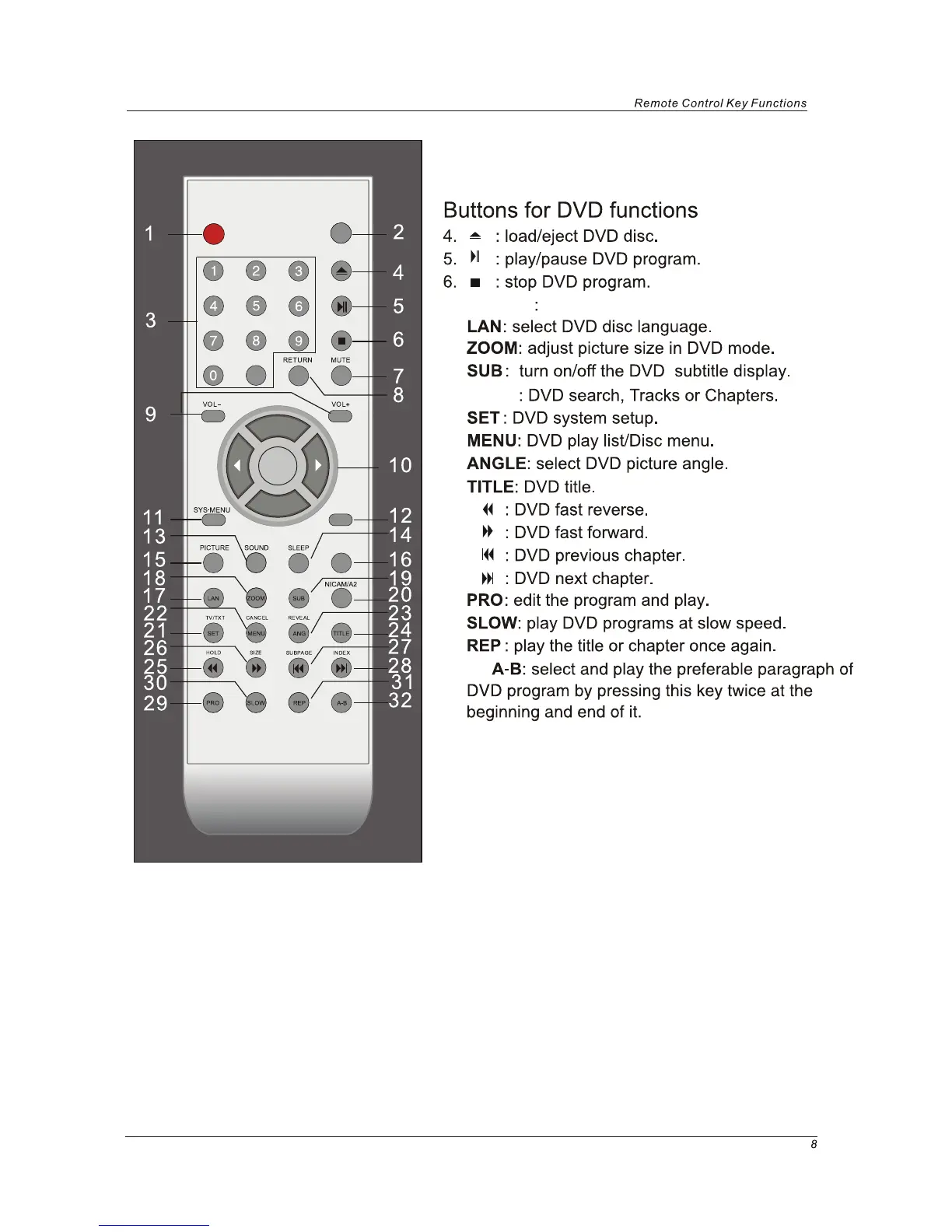 LENCO DVT-2421 - Remote Control DVD Functions; DVD Playback Controls; DVD System Controls
