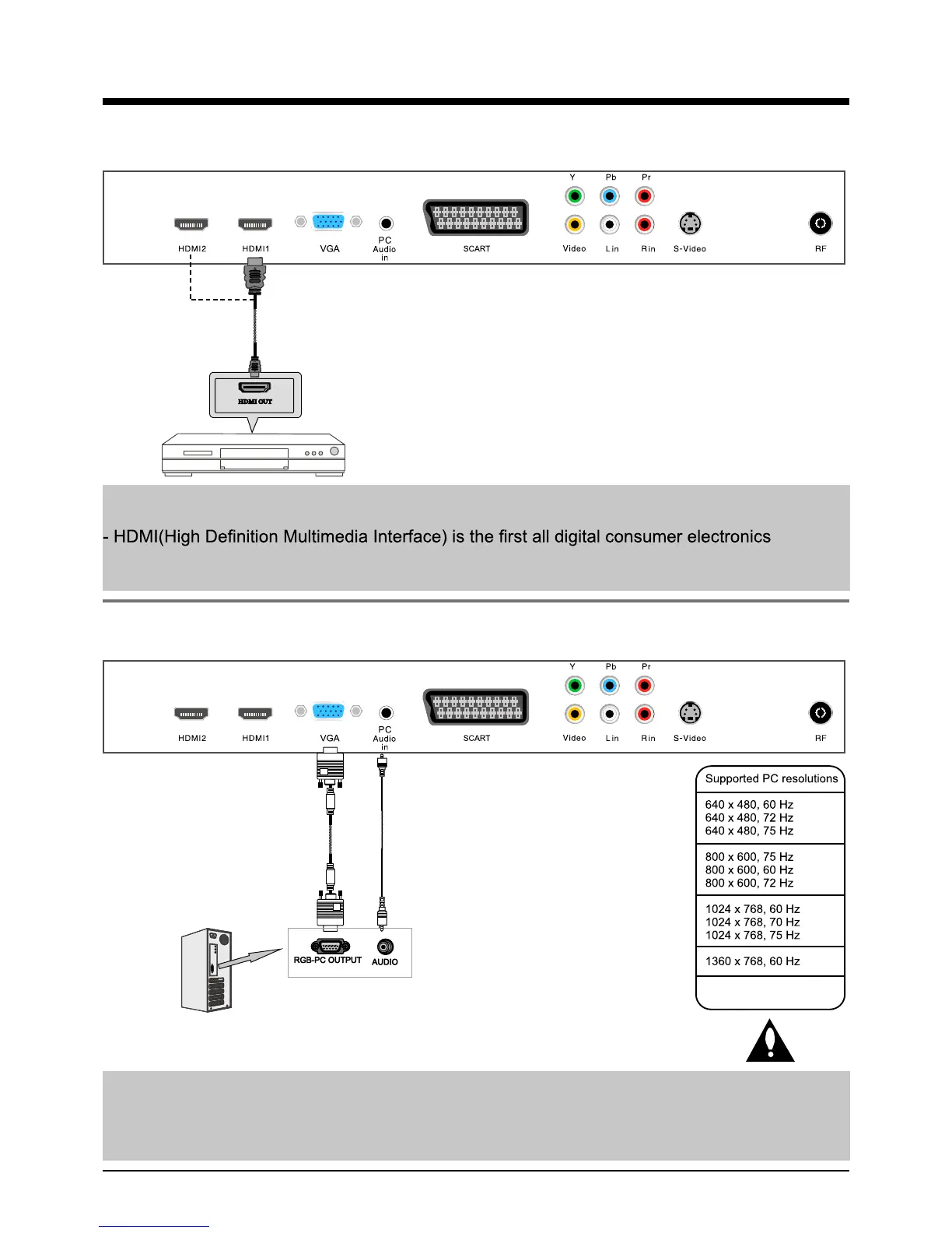 - Connect the RGB jack on the PC to the VGA jack on the TV set with a VGA cable.