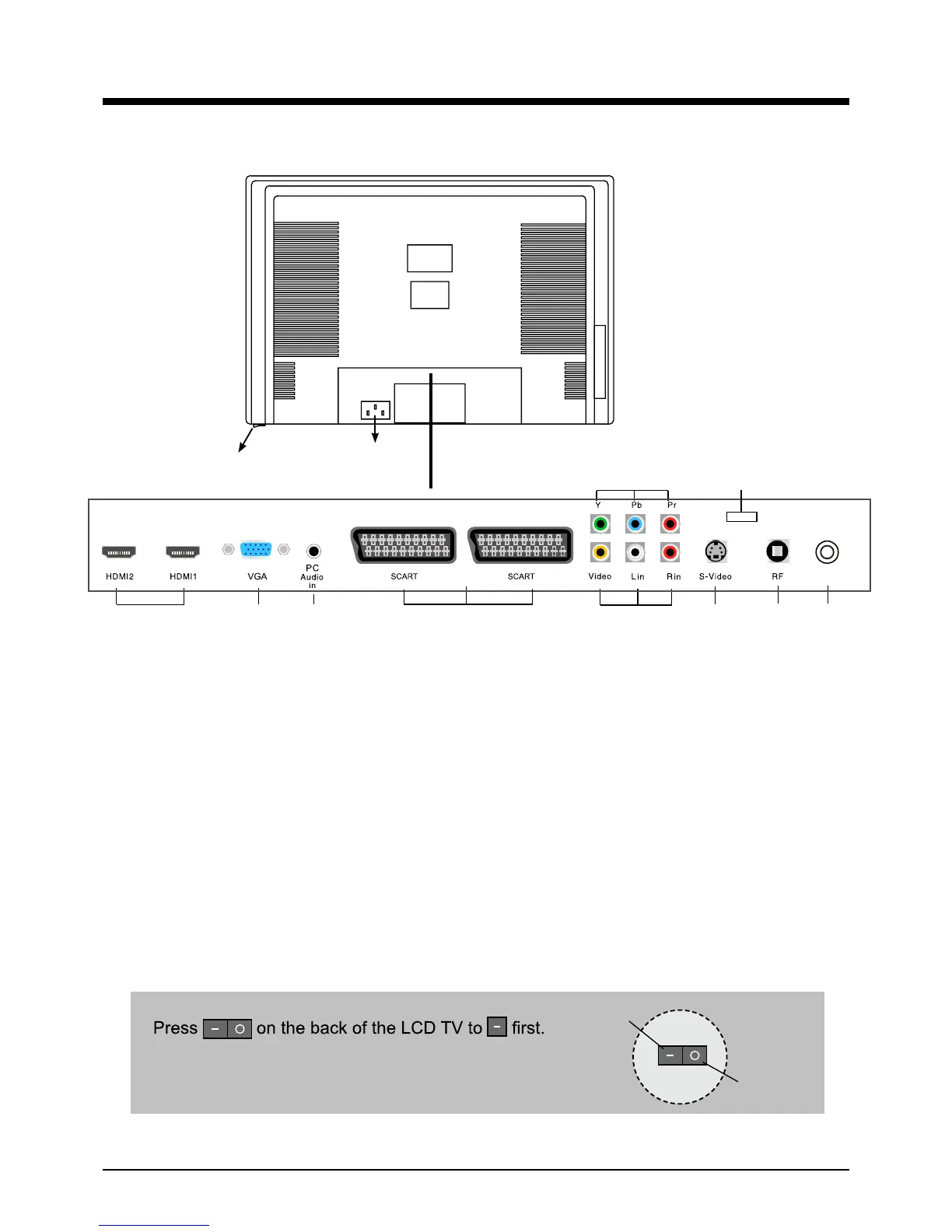8. RF: Connect antenna or cable 75 Ohm coaxial to receive TV signal.