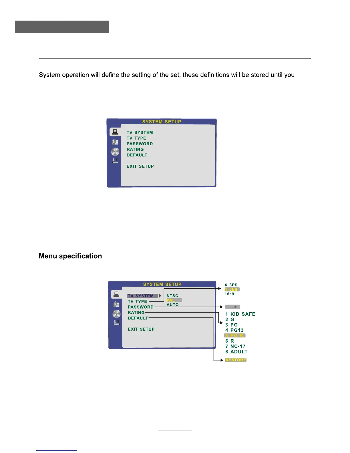button to select the Icon of the desired section, e.g. “TV System" and press