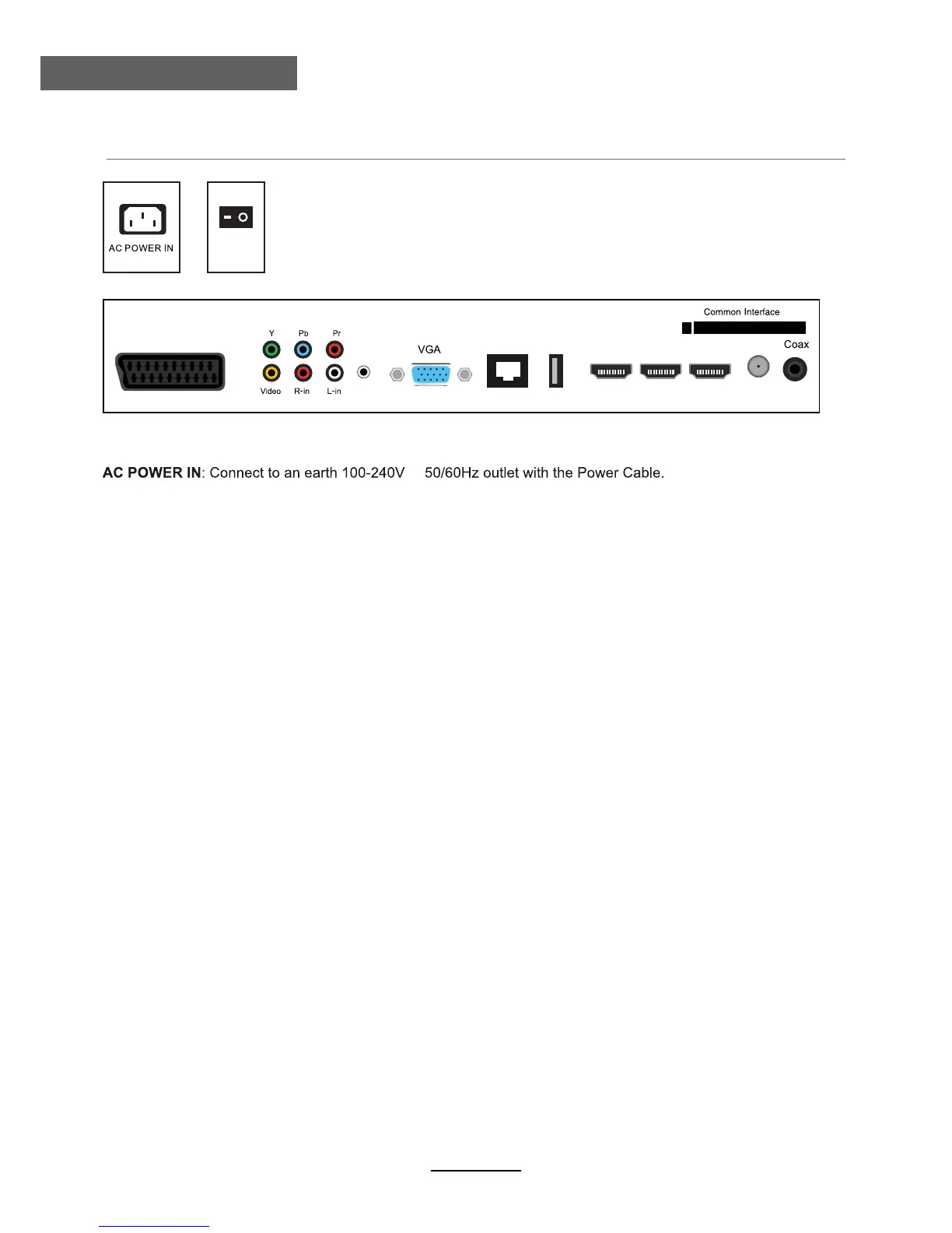 RF: Connect antenna or cable 75 Ohm coaxial to receive TV signal.