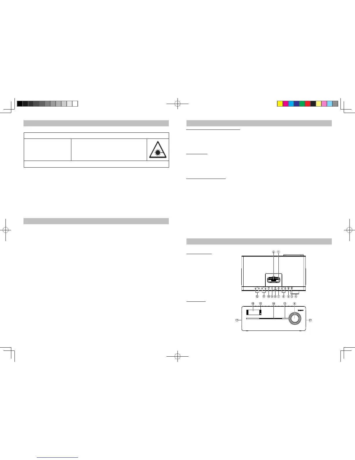 ƽ Der von diesem CD-Player benutzte Laserstrahl ist schädlich für die Augen. Öffnen Sie aus diesem