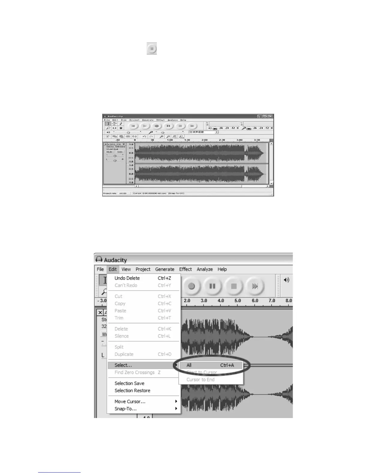 Wählen Sie die gesamte Aufnahme, indem Sie „Edit“ (Bearbeiten), „Select“ (Auswählen) und