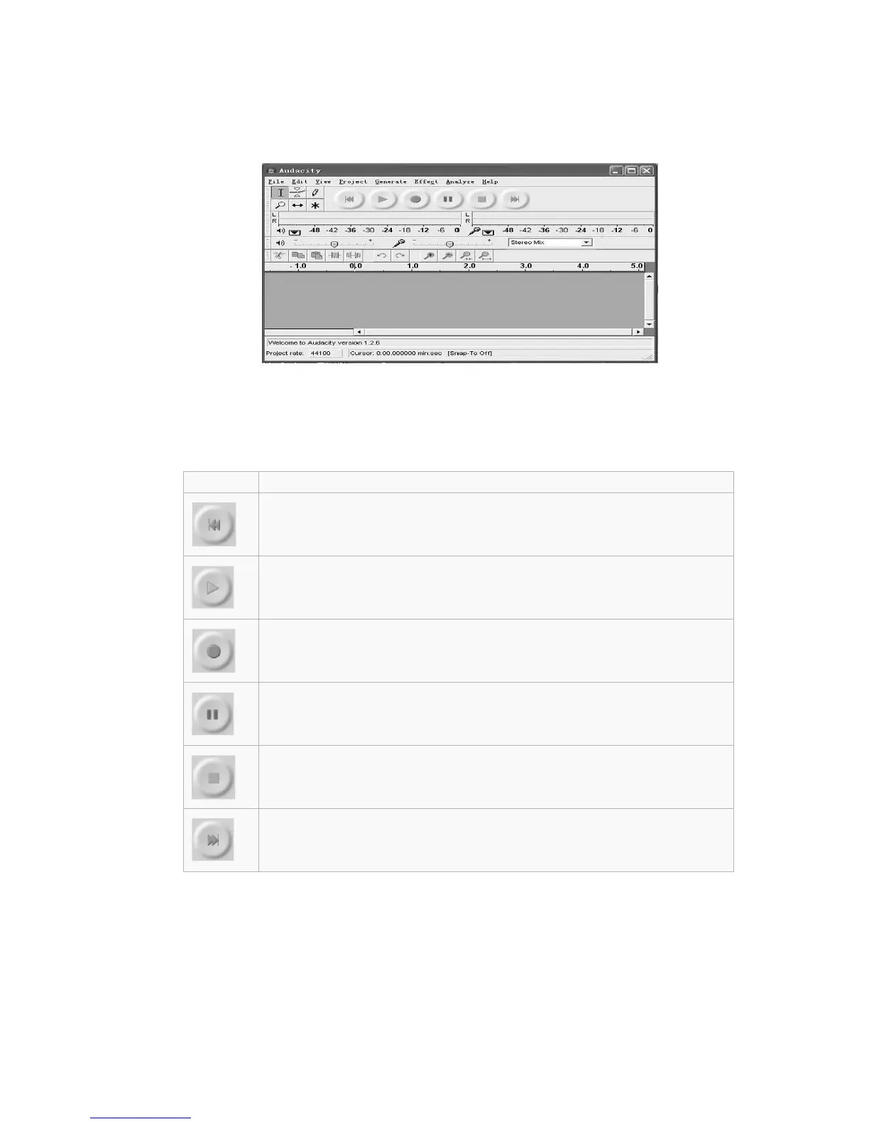 Audacity affichera une barre d’outils de commande vous permettant de modifier et de gérer vos