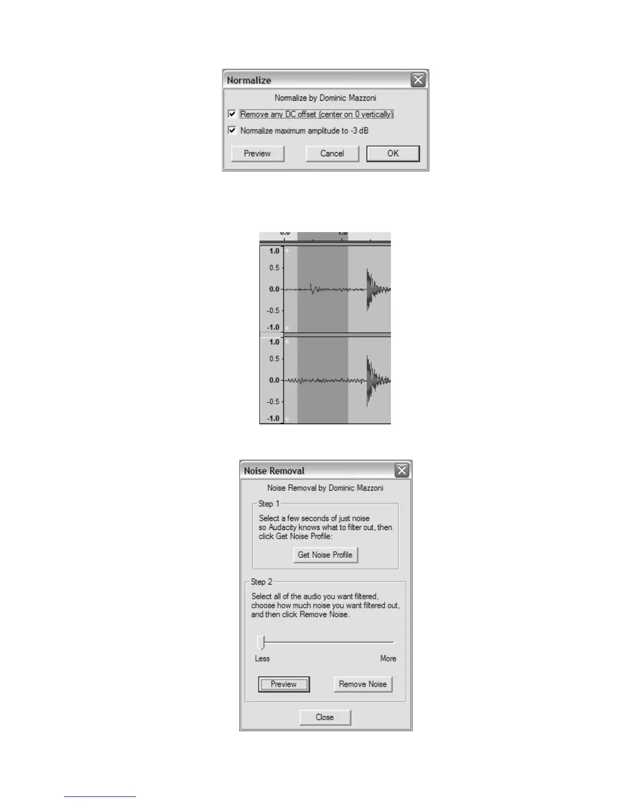 - Select “Effect” and then “Noise Removal” from the drop down menu to bring up the “Noise