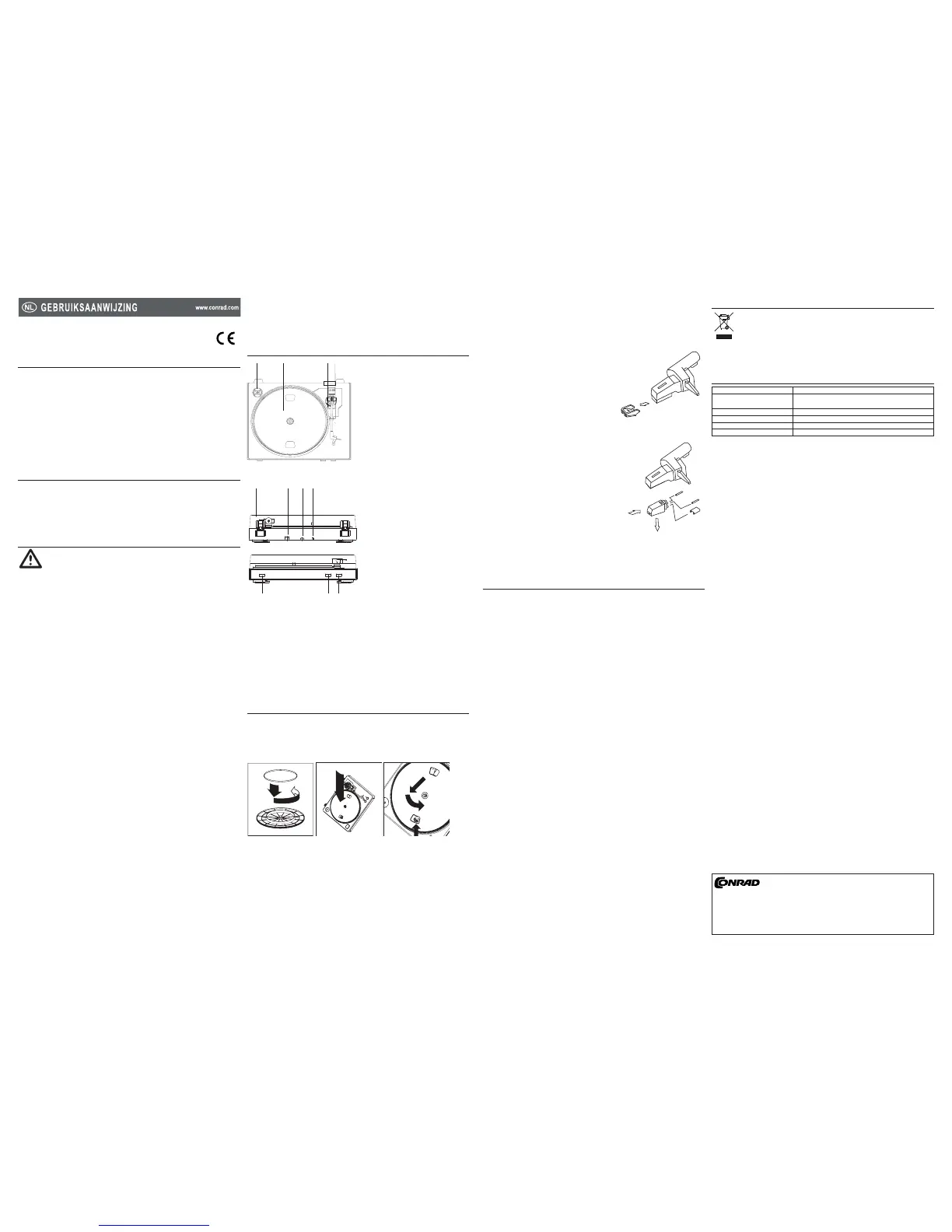 beschadiging veroorzaken aan de grammofoonplaat en aan de draaitafel.
