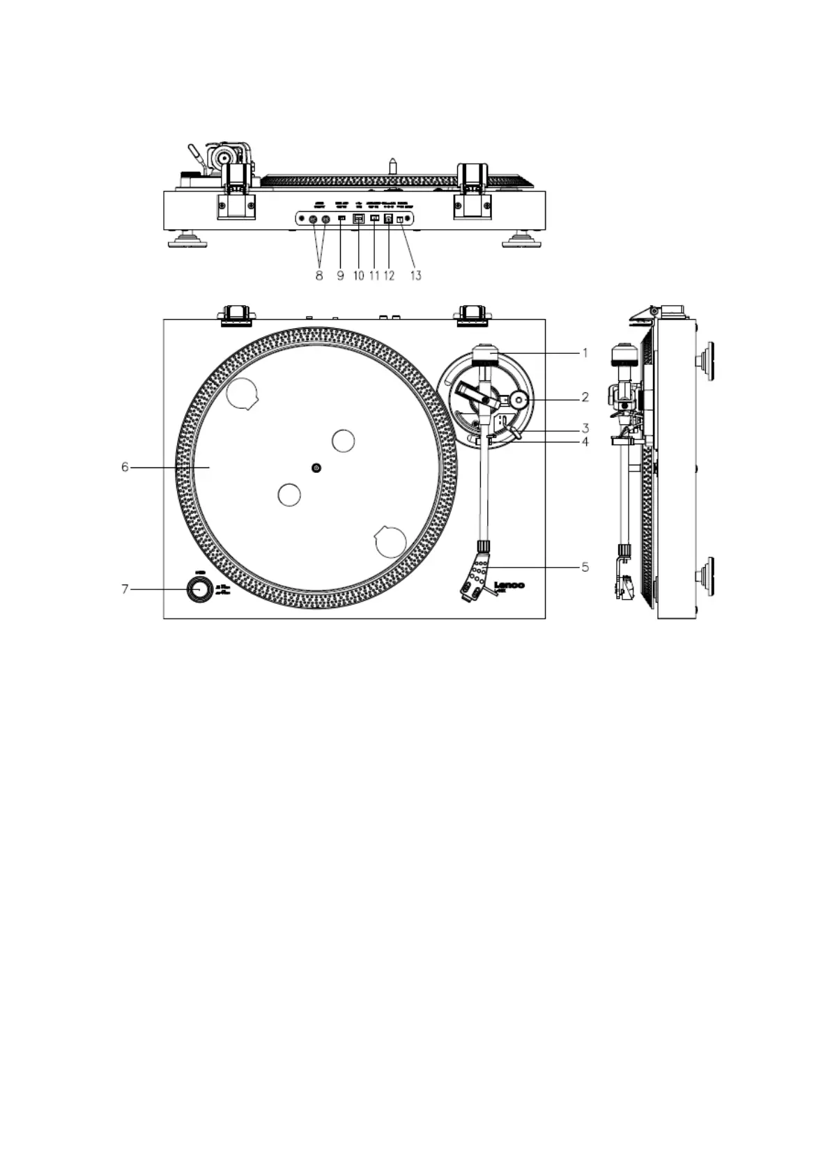3. Levier du bras de lecture : il abaisse ou élève le bras de lecture.