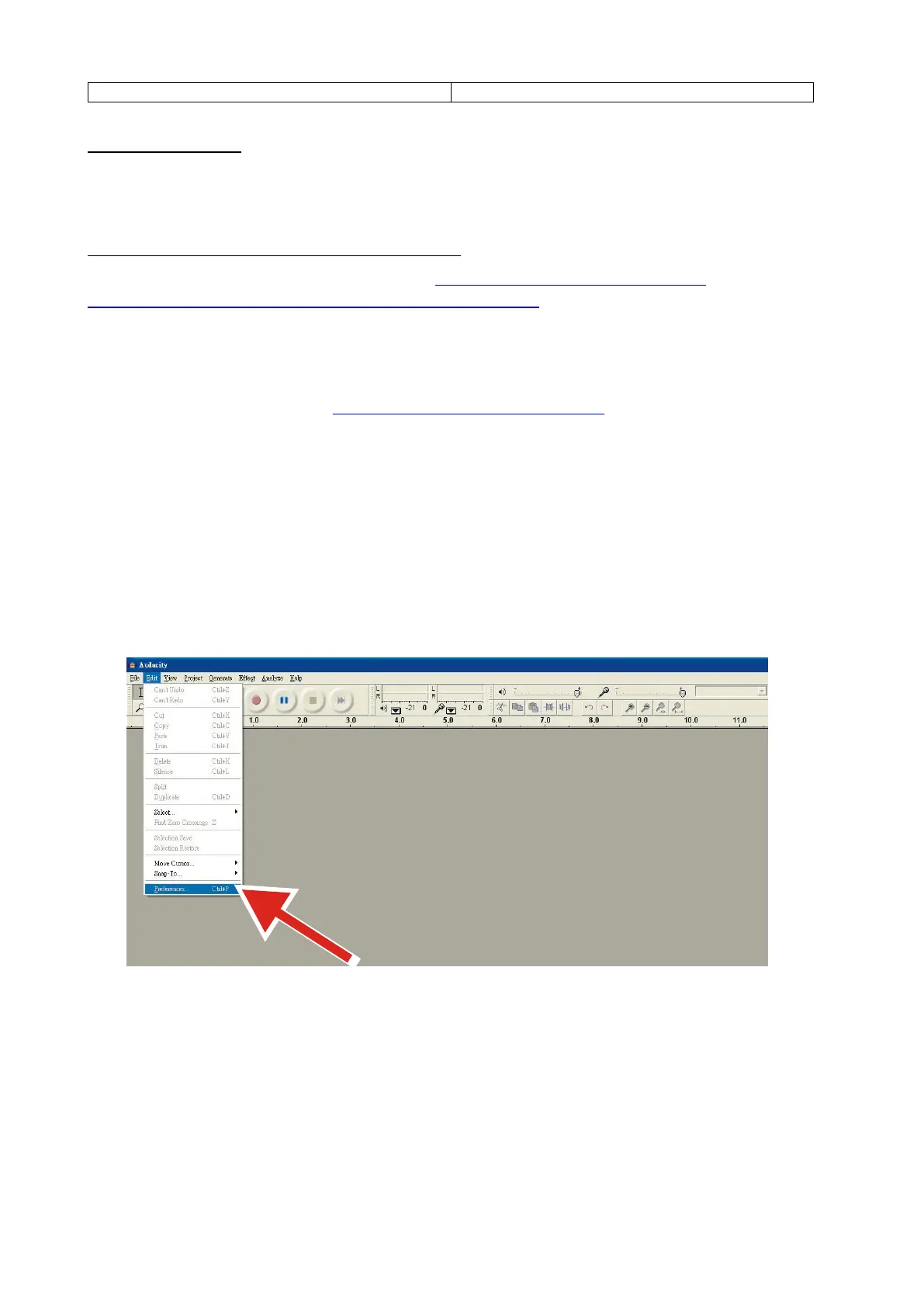 5. Wählen Sie im Audacity-Menü unter dem Reiter Edit (Bearbeiten) Preferences (Einstellungen) aus.