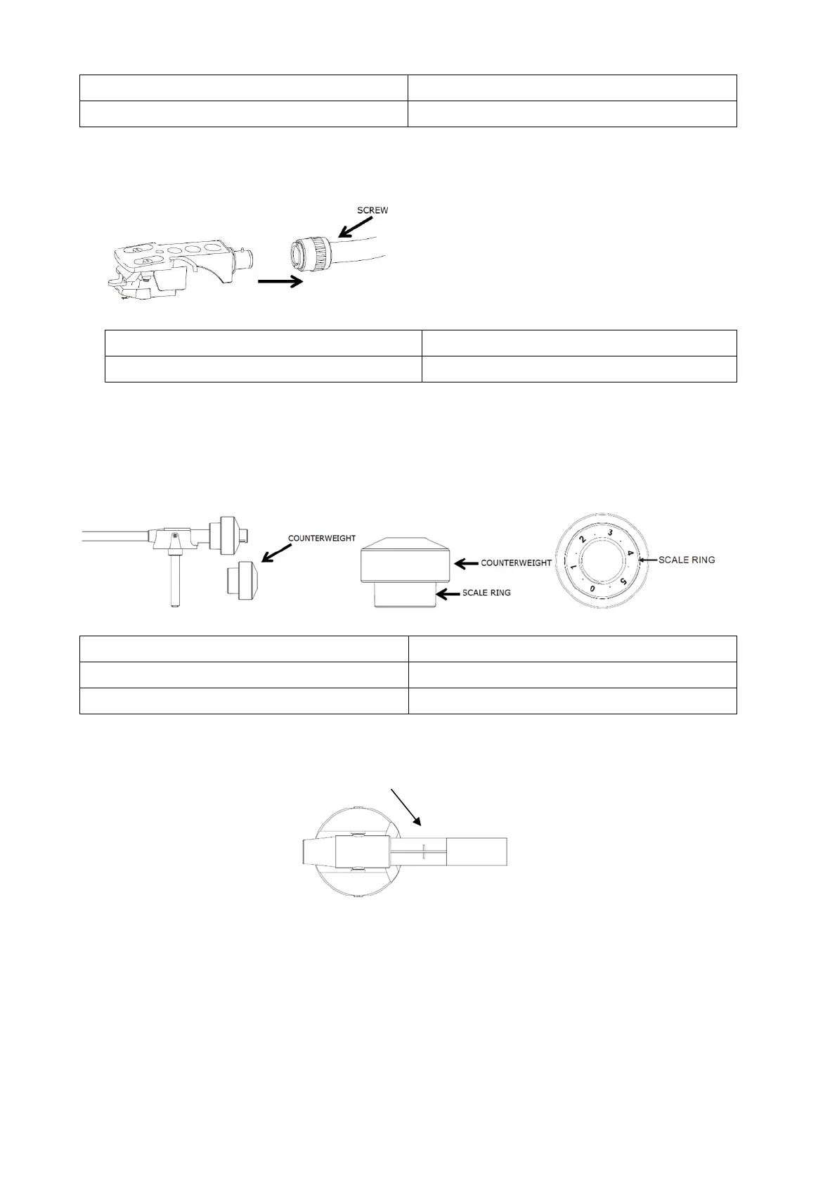 - FAITES GLISSER LE CONTREPOIDS SUR LE BRAS DE LECTURE. TOURNEZ-LE LÉGÈREMENT POUR LE VISSER SUR