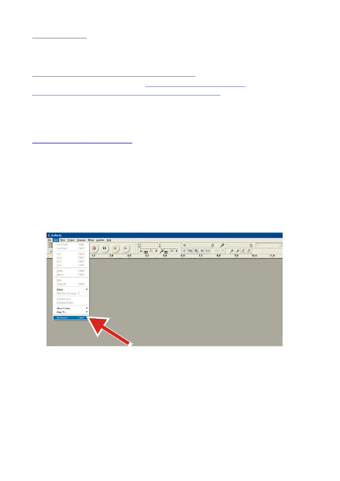 5. Sélectionner Preference (Préférence) sur Edit (Modifier) dans le Menu Audacity.