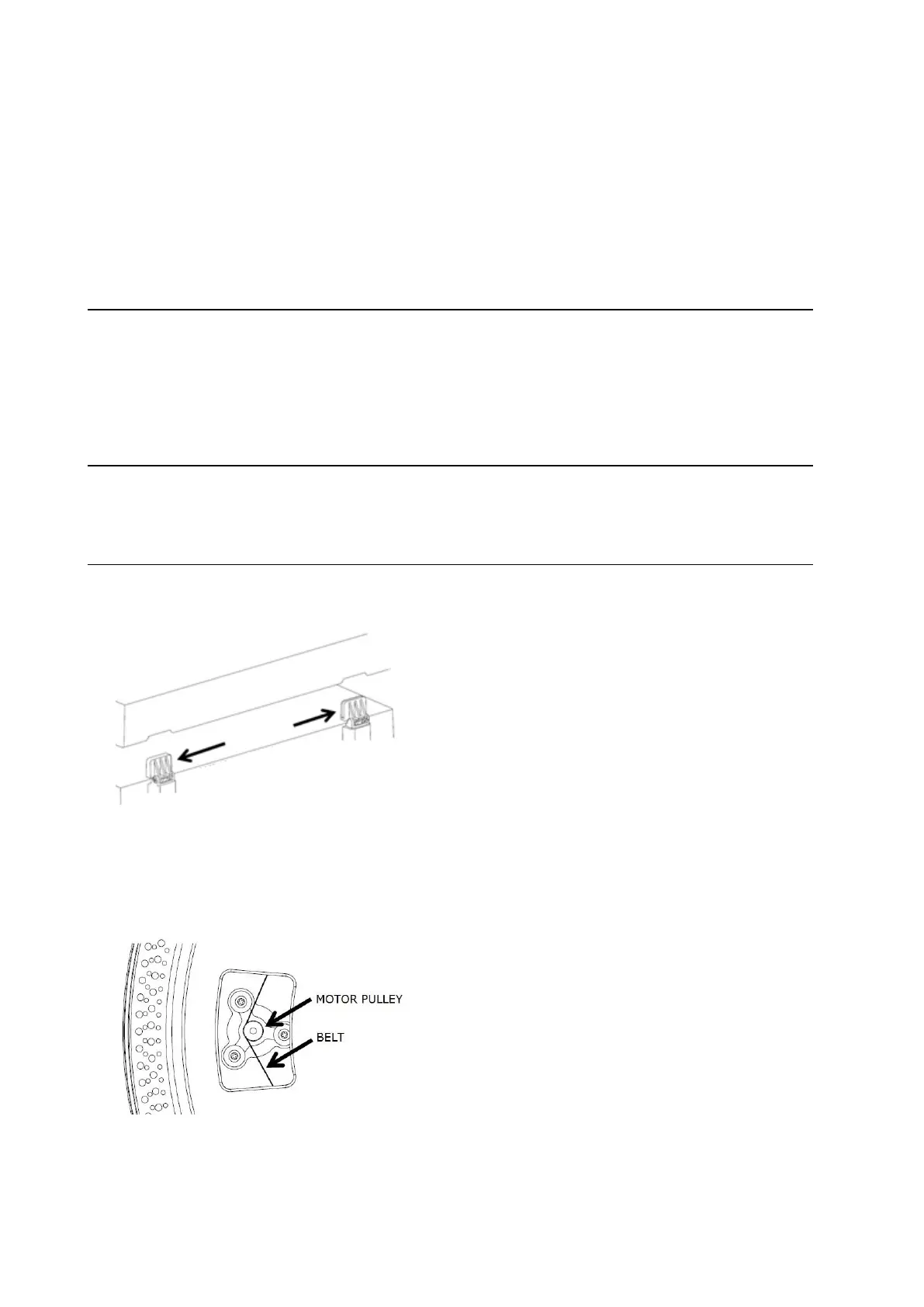- ATTACH THE DRIVE BELT: POSITION THE BELT ON THE MOTOR PULLY, THE DRIVE BELT IS TIGHTENED UNDER THE