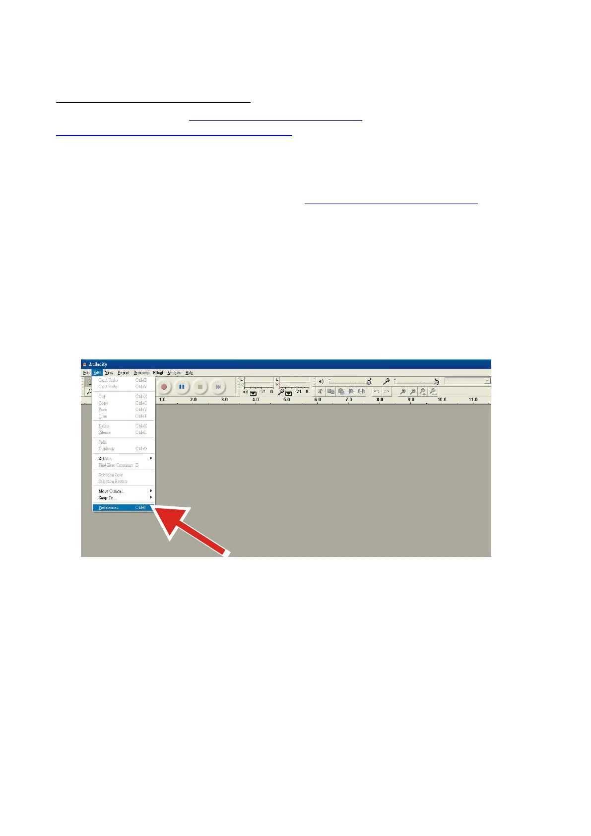 5. Selezionare Preferenza dalla scheda Modifica nel menu Audacity.