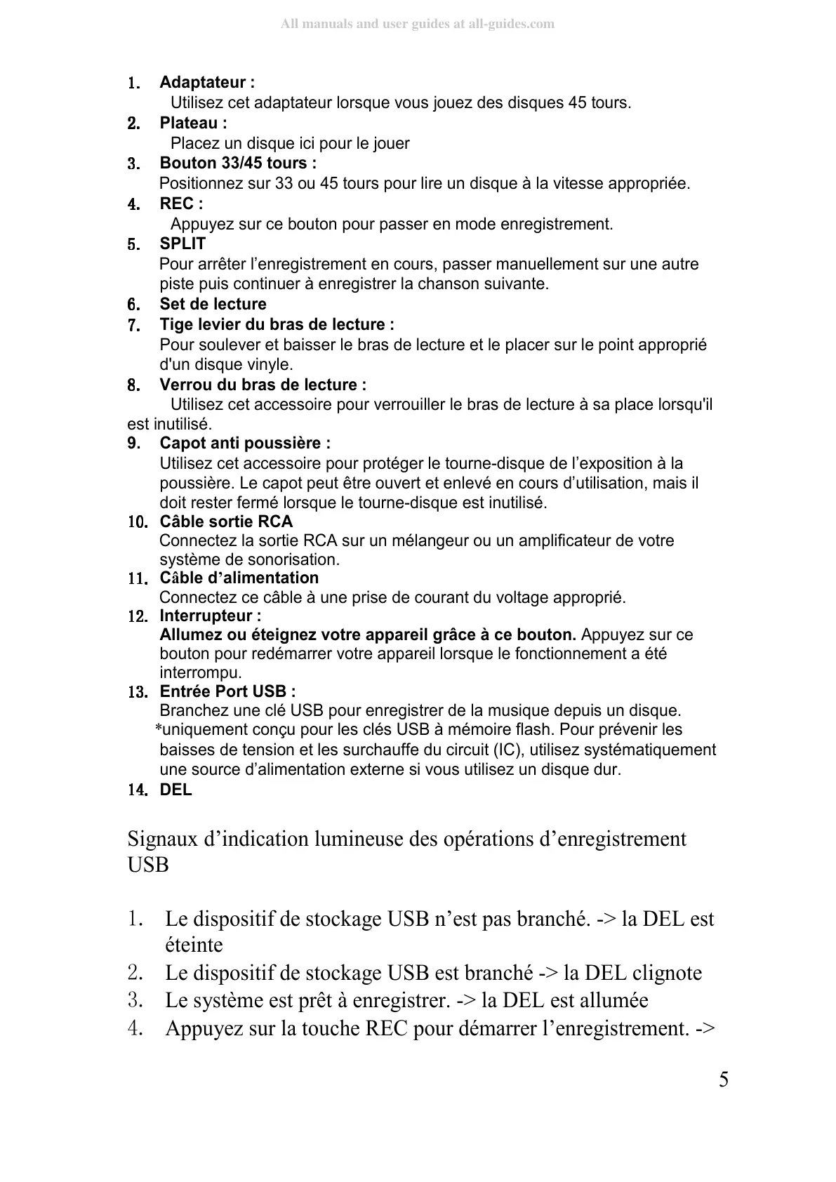 1. Le dispositif de stockage USB n’est pas branché. -> la DEL est