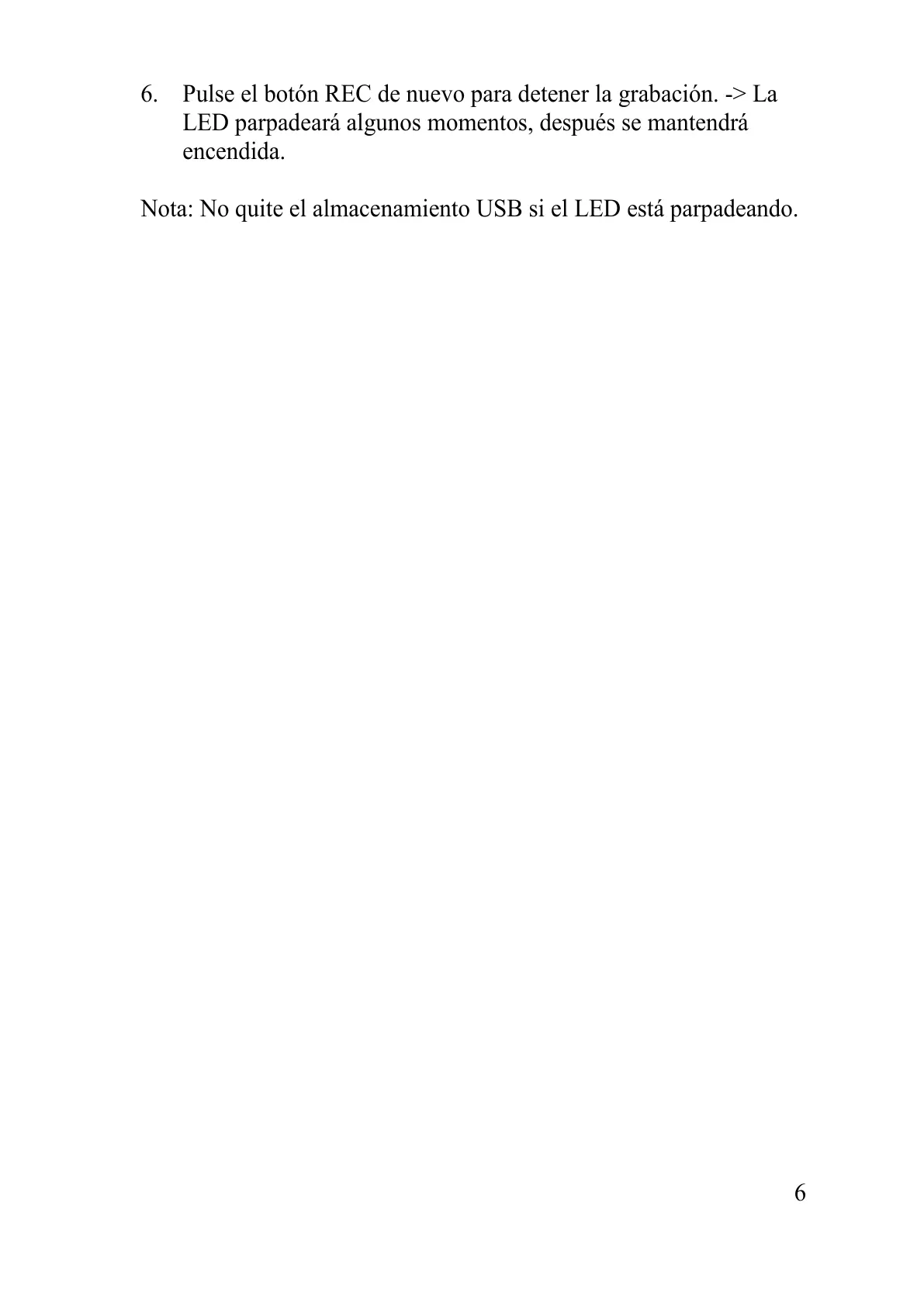Nota: No quite el almacenamiento USB si el LED está parpadeando.