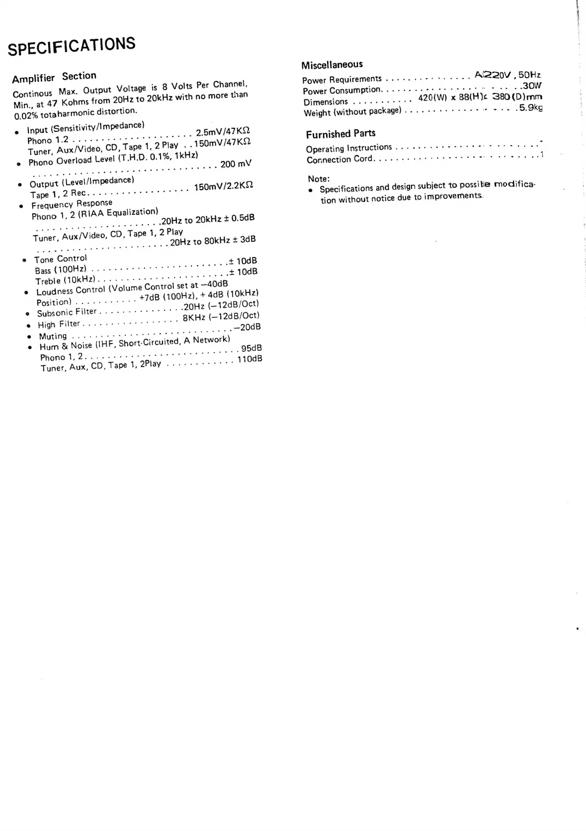 SPECIFICATIONS
