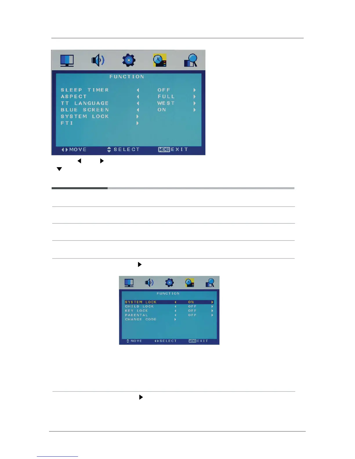 Use the and buttons to select the FUNCTION menu (as the picture above), press