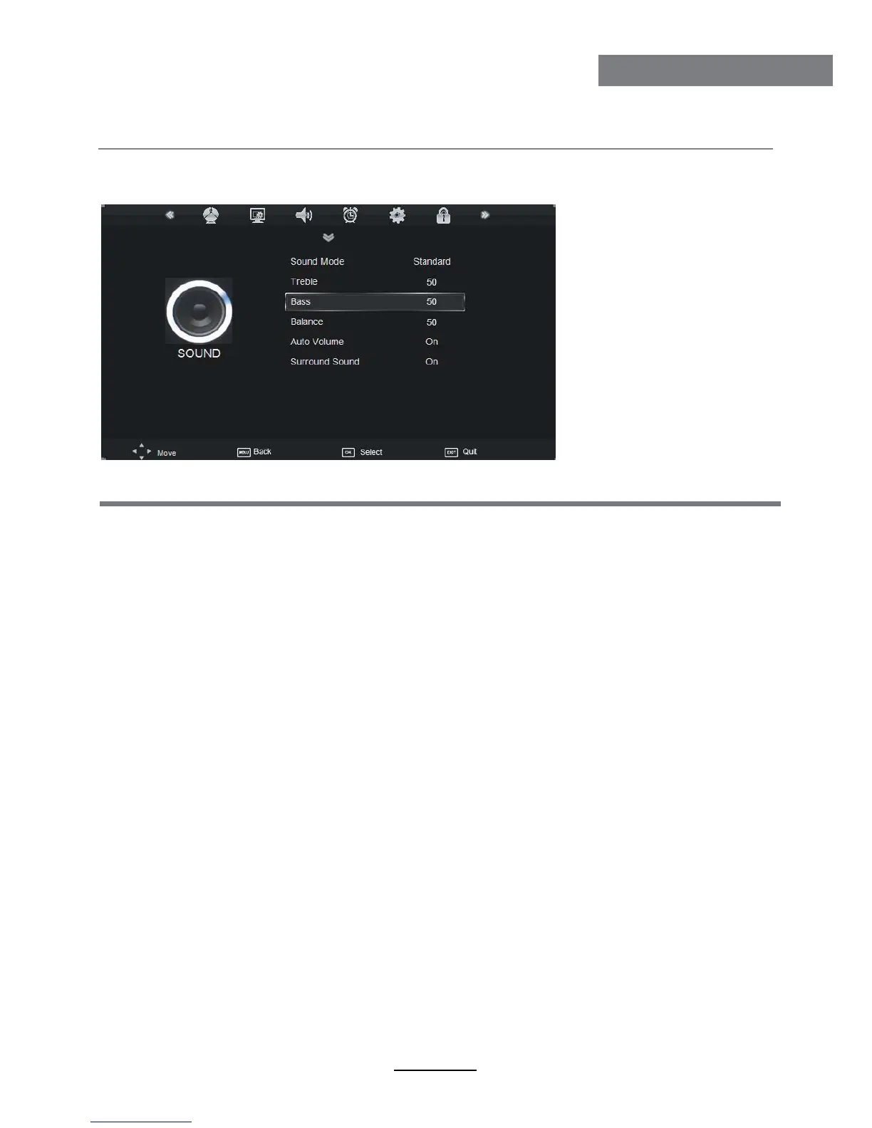 Surround Sound: Turn on/off the surround sound function by selecting “off”/“on”.