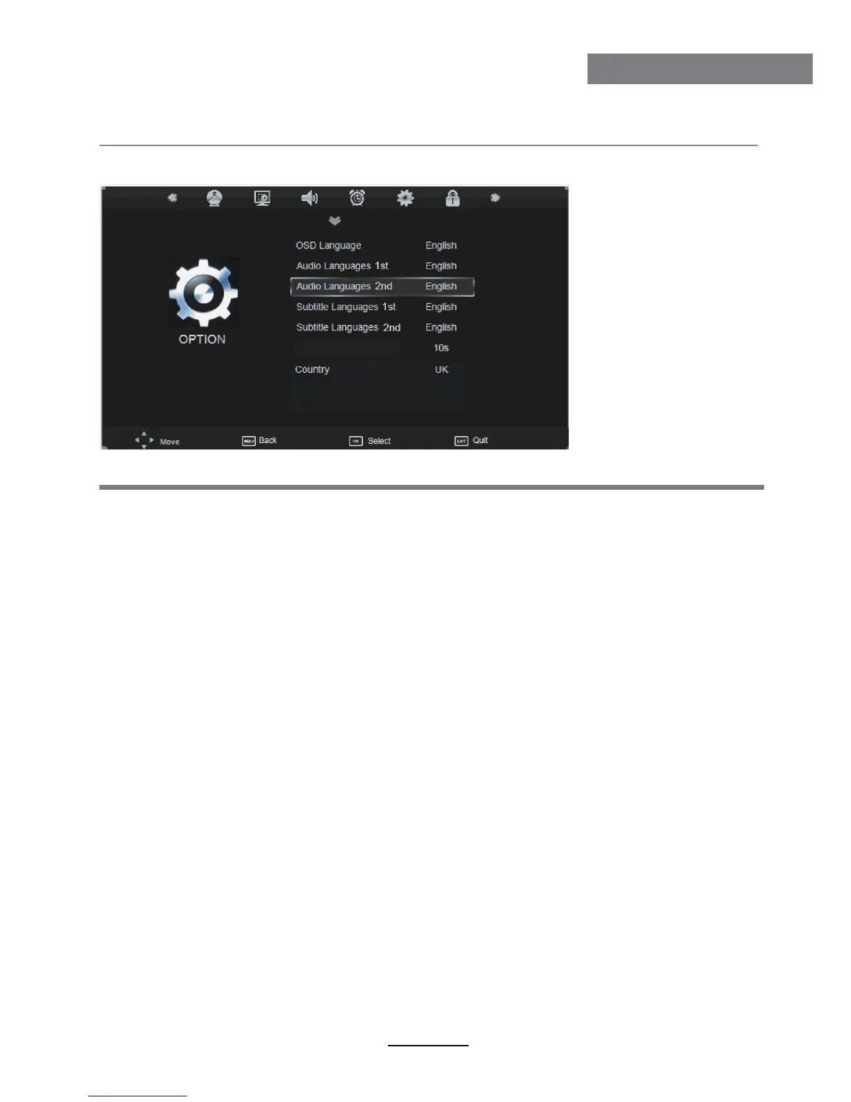 Audio Language 1st/2nd (can be selected in DTV mode): Allows you to select first and