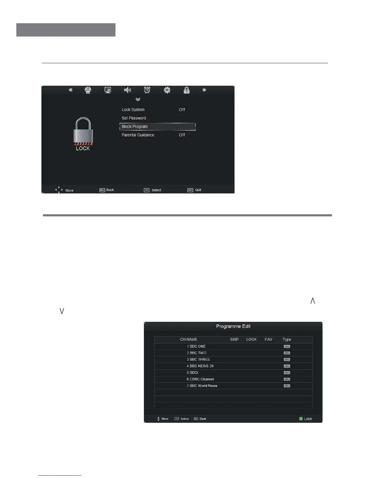 Block Program: Lock the channel, you have to enter the code to view the channel. Use
