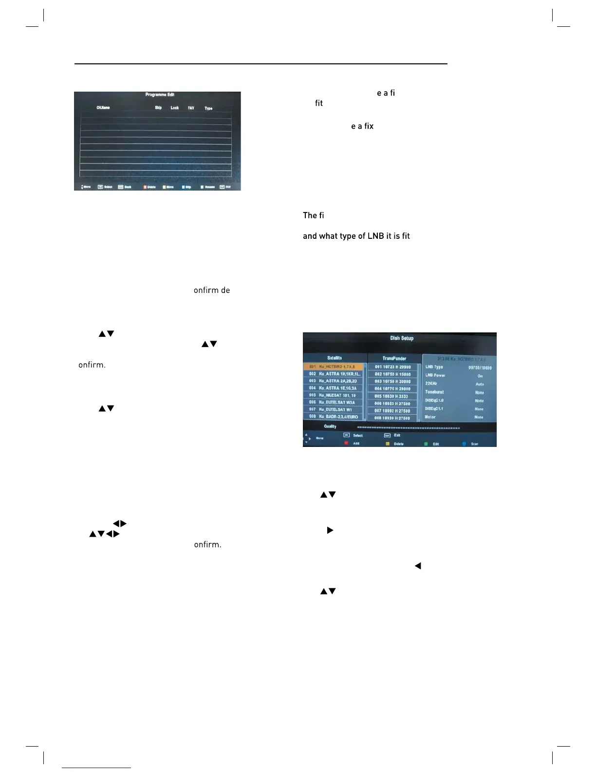 Use buttons to select the satellite to which your dish