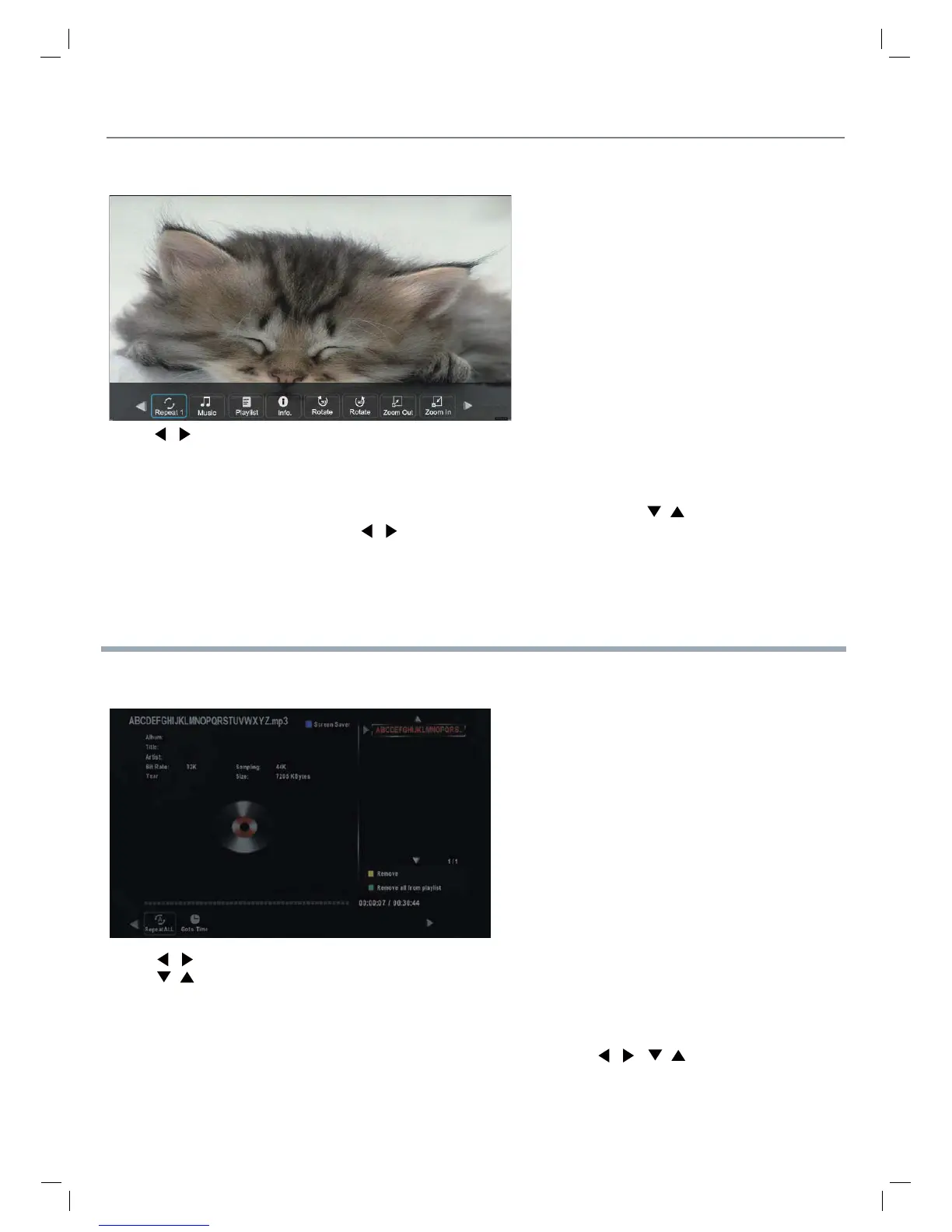 Playlist: Display the playlist on the screen, and you can select the photo by / button, and