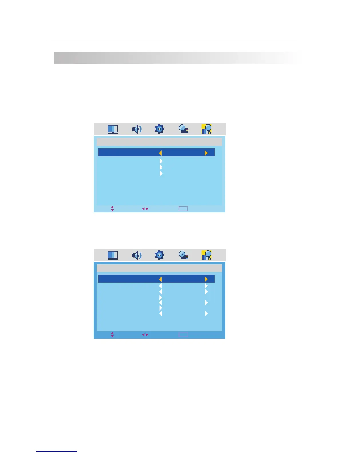 ·Use down【 ▼】arrow button to highlight COLOR. SYS. Navigate using 【◄】 /【 ► 】arrow button to select the color