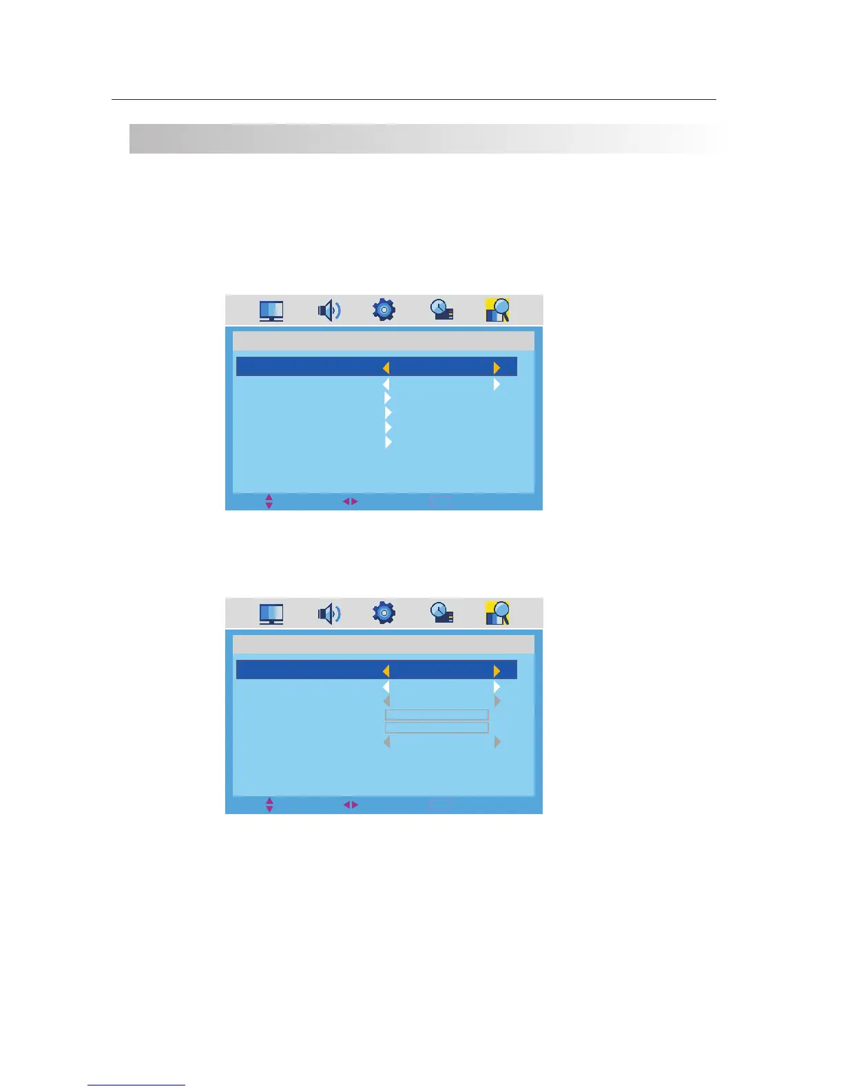 ·Use down【 ▼】arrow button to highlight COUNTRY and AUTO SCAN. The operation of these two optins can be referred