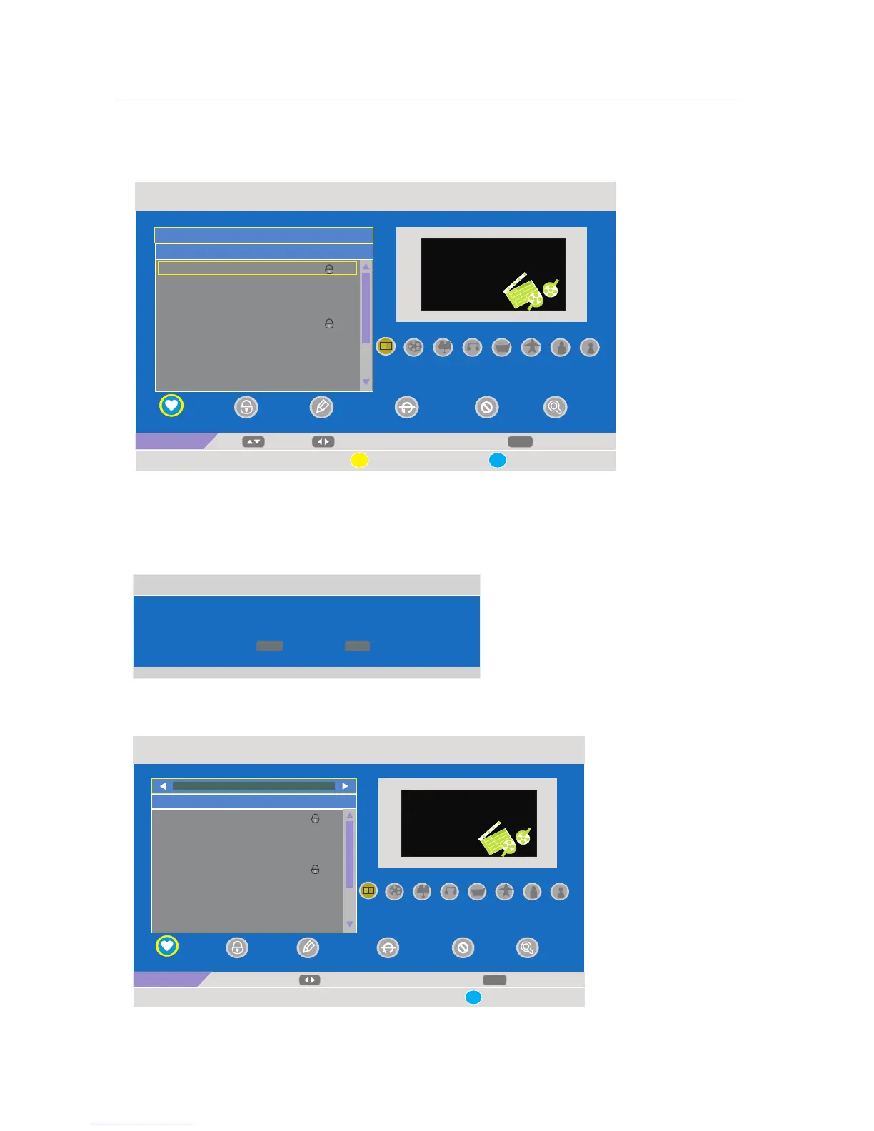 Yellow button on the remote, the menu will appear as follows: