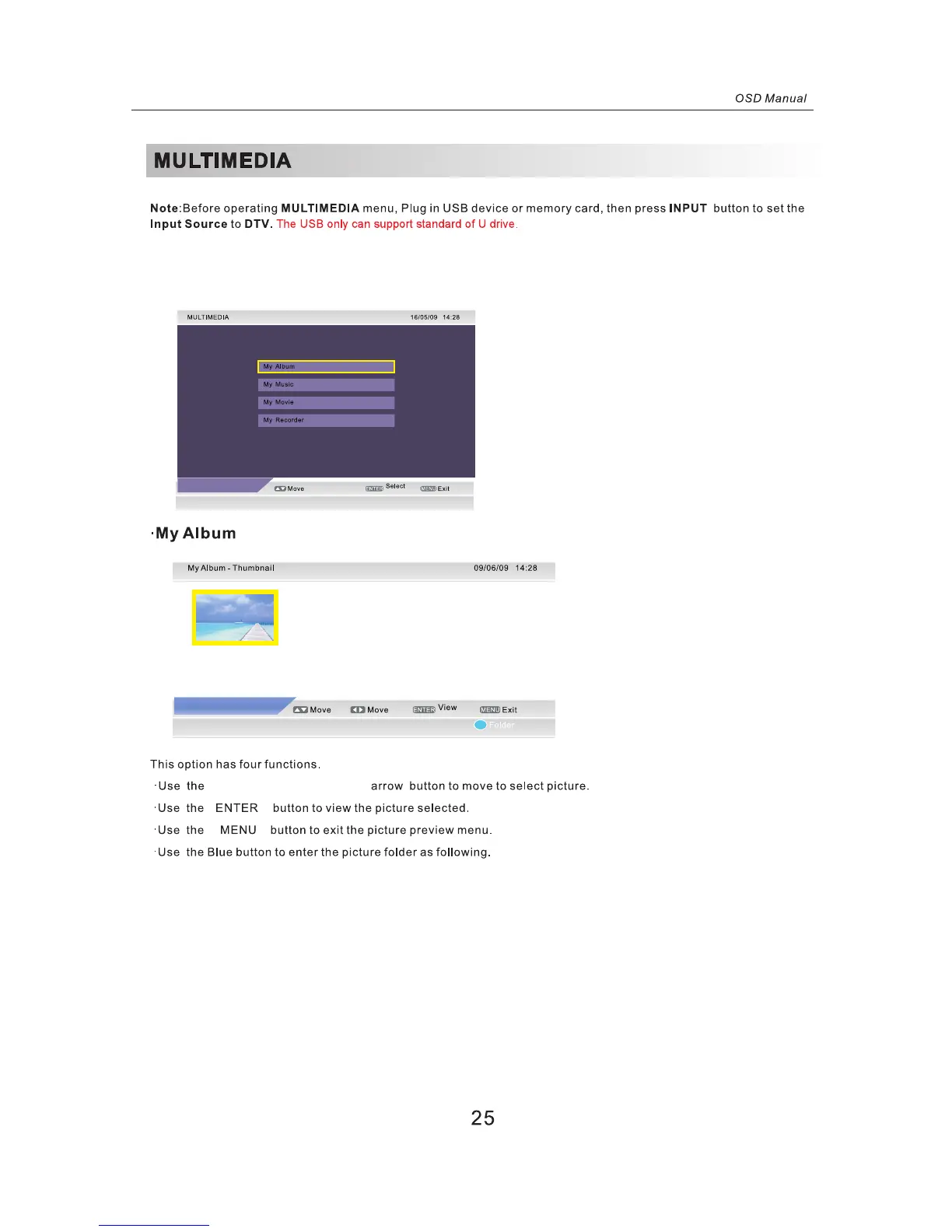 Navigate using the arrow buttons to select the options including My Album, My Music, My Movie and My
