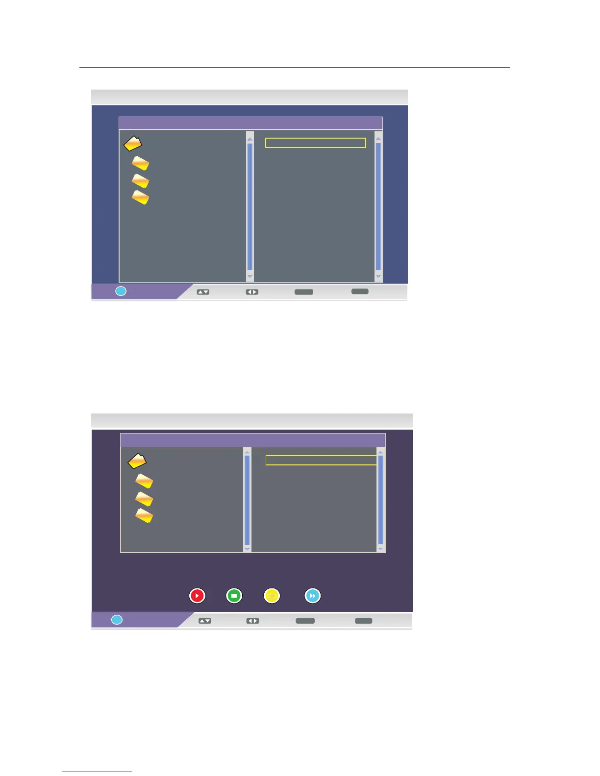 ·Use the Yellow button to select the play mode roundly: No Repeat, Repeat All and Repeat Once.