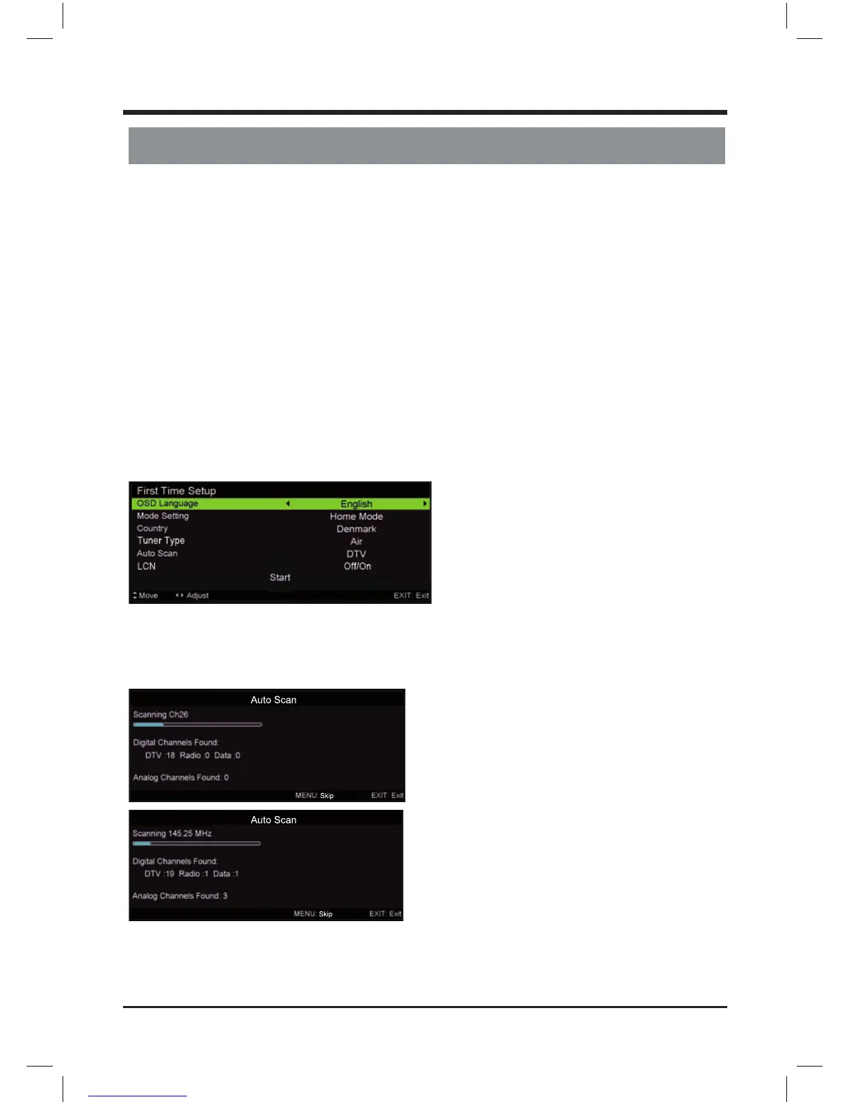 First tuning digital, press MENU button to skip digital tuning, Second tuning analogue, press MENU