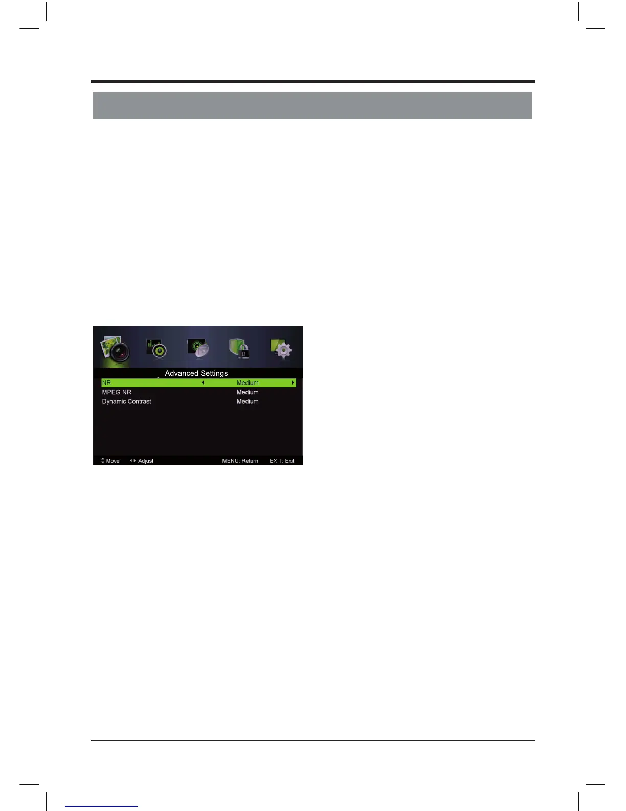 Press / button to select NR, then press / button to select.