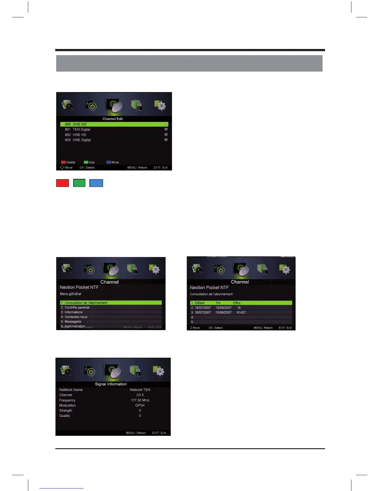 - Press the Red button to delete the channel.